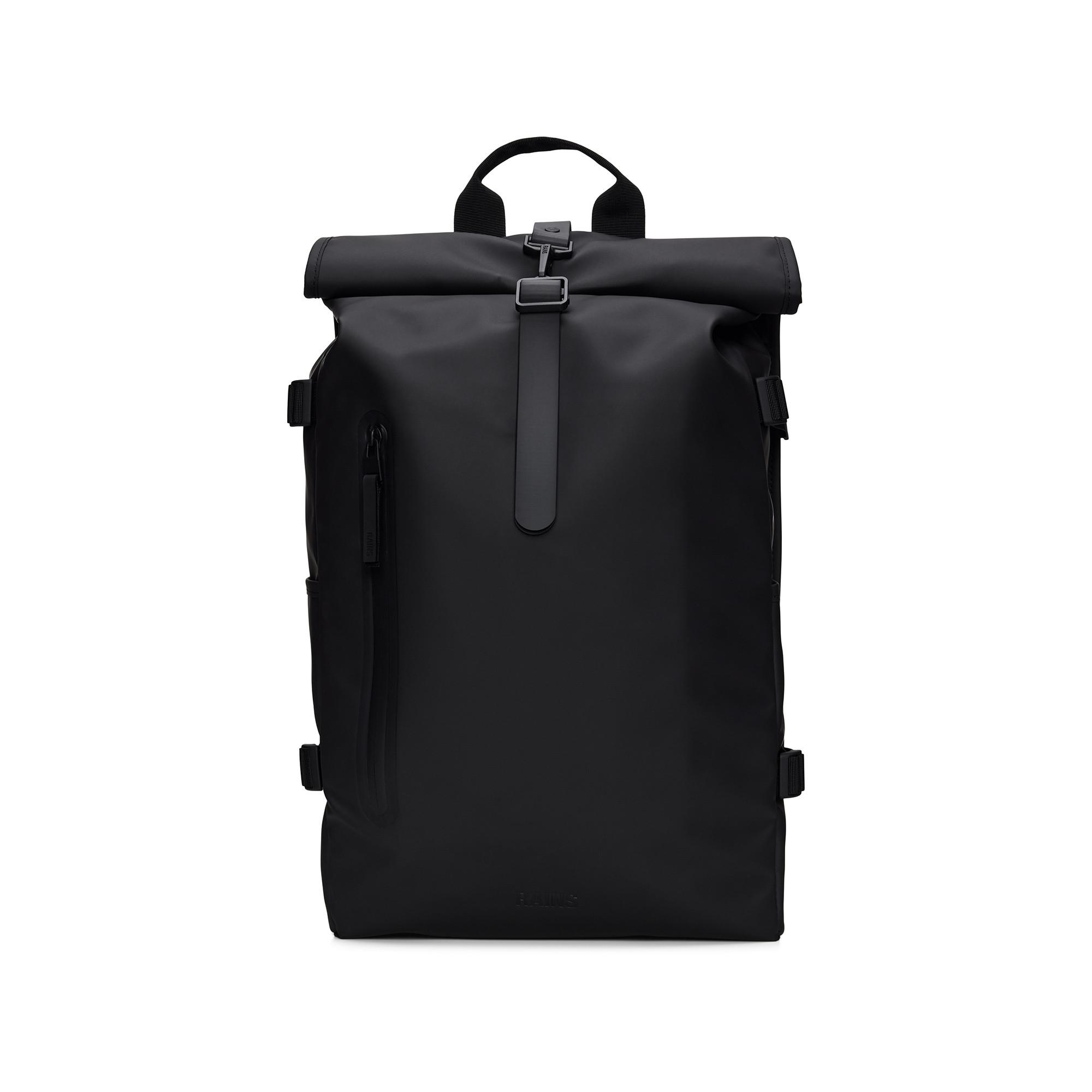 Le sac à dos Rolltop Rucksack Large est fabriqué en PU imperméable signé Rains et comporte une fermeture à bouton-pression avec mousqueton, une organisation interne et externe comprenant une pochette pour ordinateur portable et un panneau arrière rembourré en maille aérée.