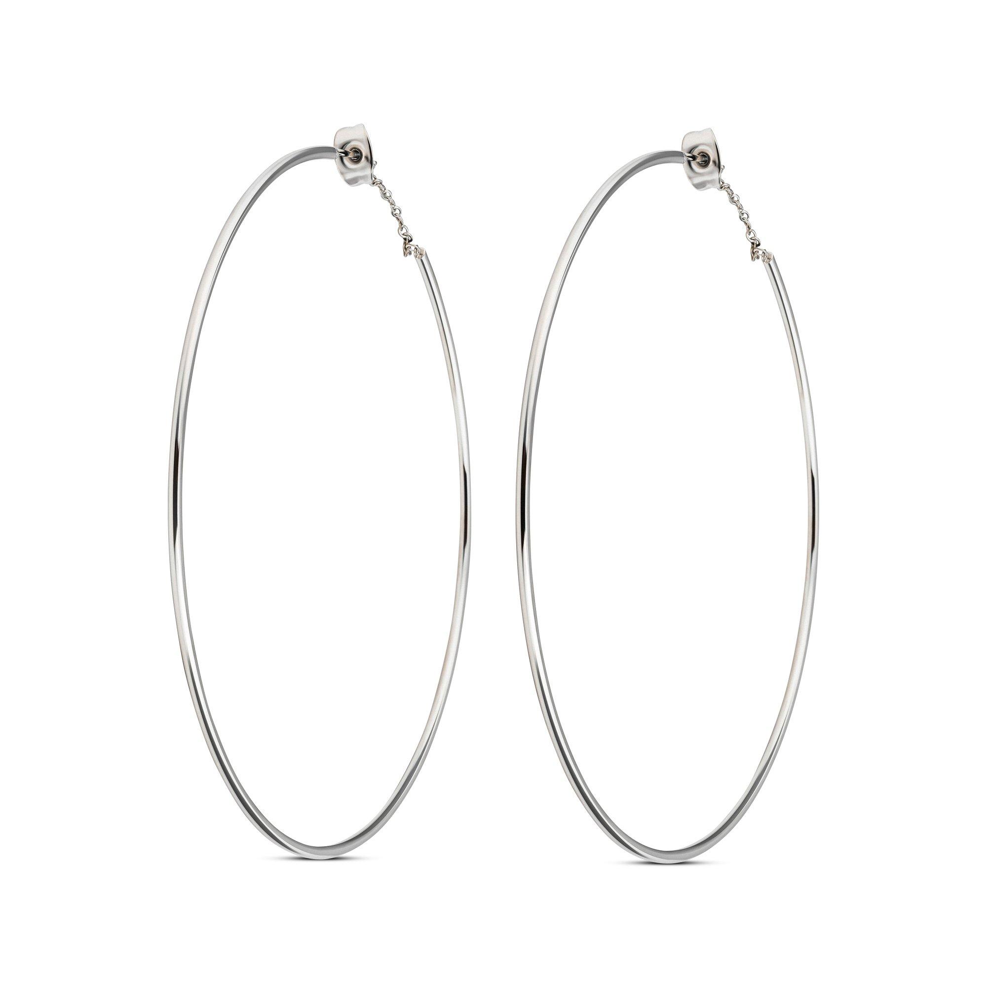 Ces créoles en acier inoxydable poli de Zag Bijoux se distinguent par leur design classique au format XL. Elles se ferment de manière non conventionnelle, mais pratique par une boucle.