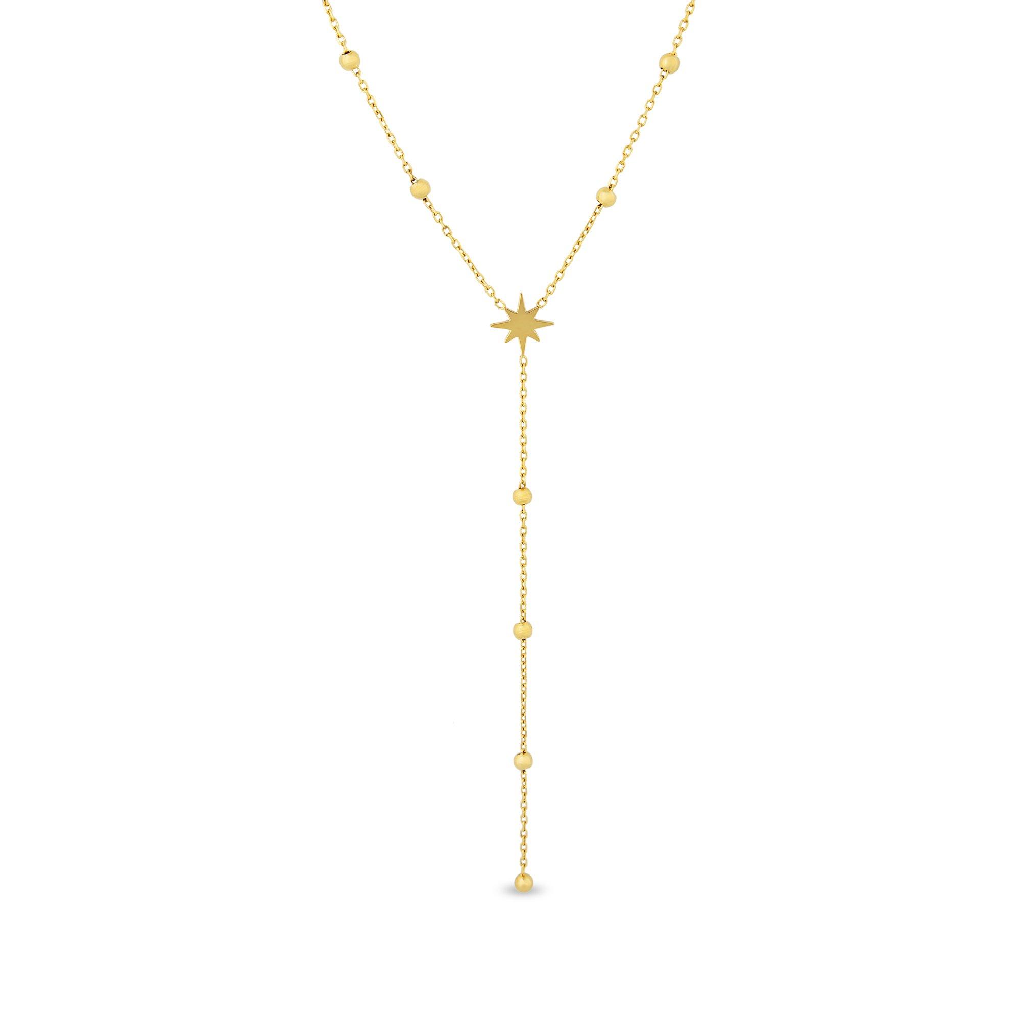 Ce collier de Zag Bijoux est une bijouterie filigrane en acier inoxydable doré. Le centre forme une étoile ornée de pierres décoratives. Un seul brin de chaîne souligne la finesse du bijou, qui est fermé par un mousqueton. La chaîne est réglable en longueur.