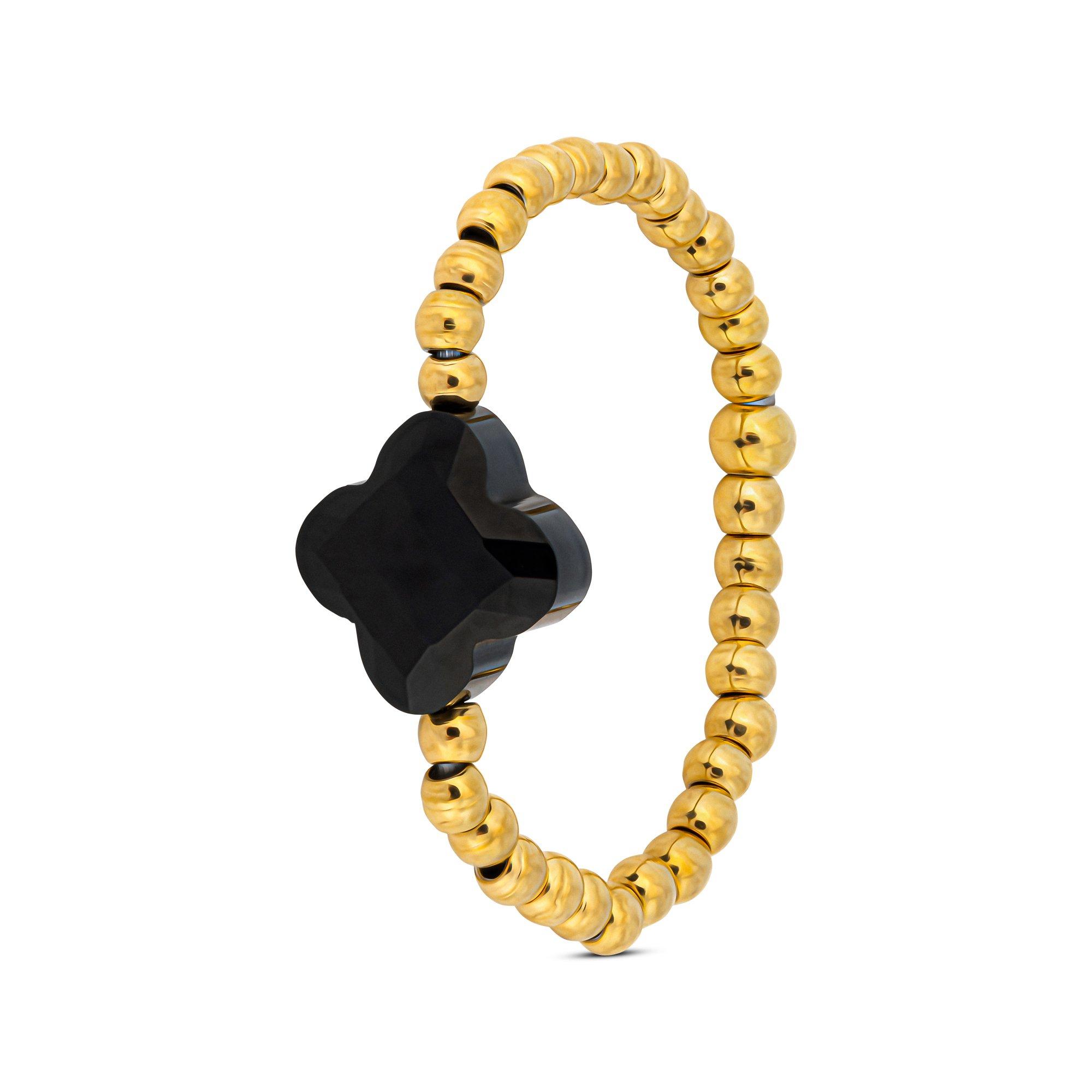 Cette bague filigrane de Zag Bijoux est en billes d'acier poli. La bague est élastique et a une forme de fleur stylisée, particulièrement en combinaison avec d'autres bijoux de la collection.
