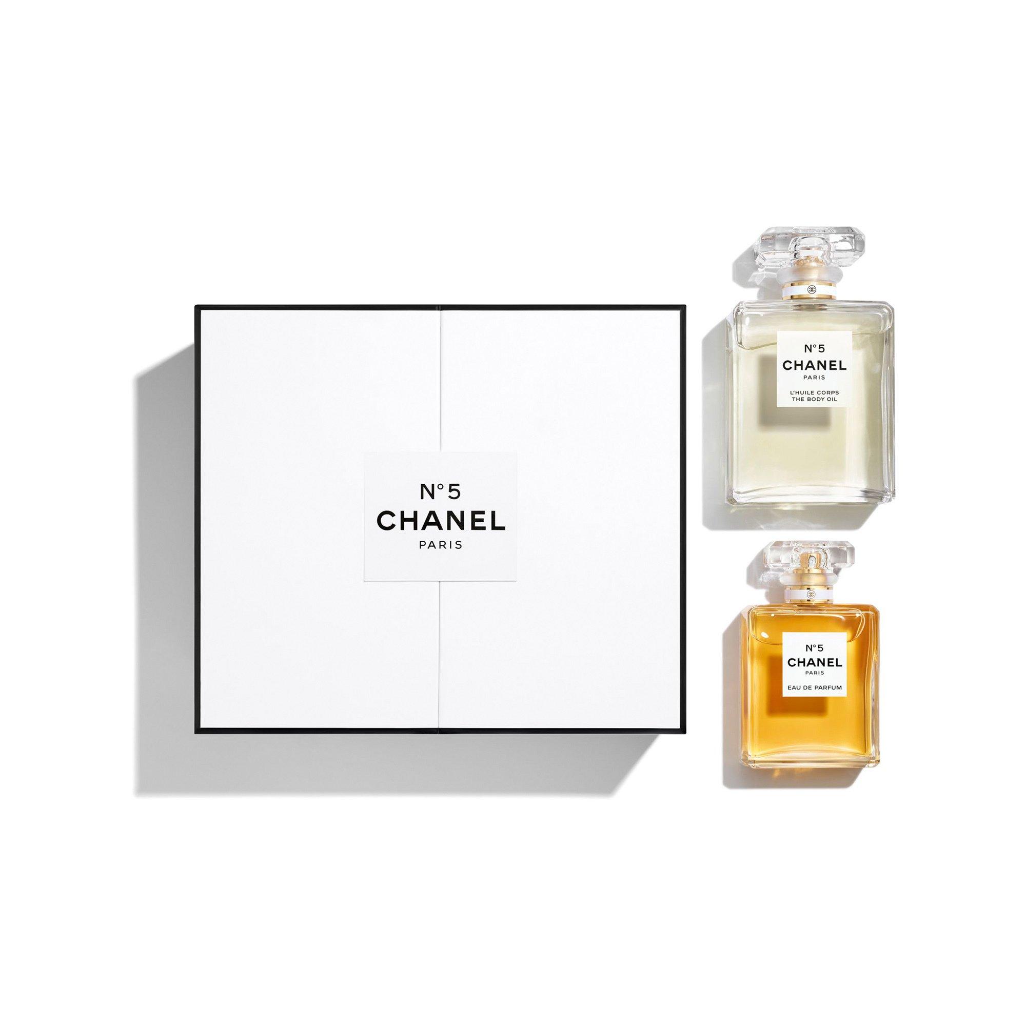 À l’occasion des fêtes de fin d’année, CHANEL imagine un coffret réunissant N°5 Eau de Parfum et N°5 L’Huile Corps dans un format exclusif reprenant les lignes du flacon iconique N°5.