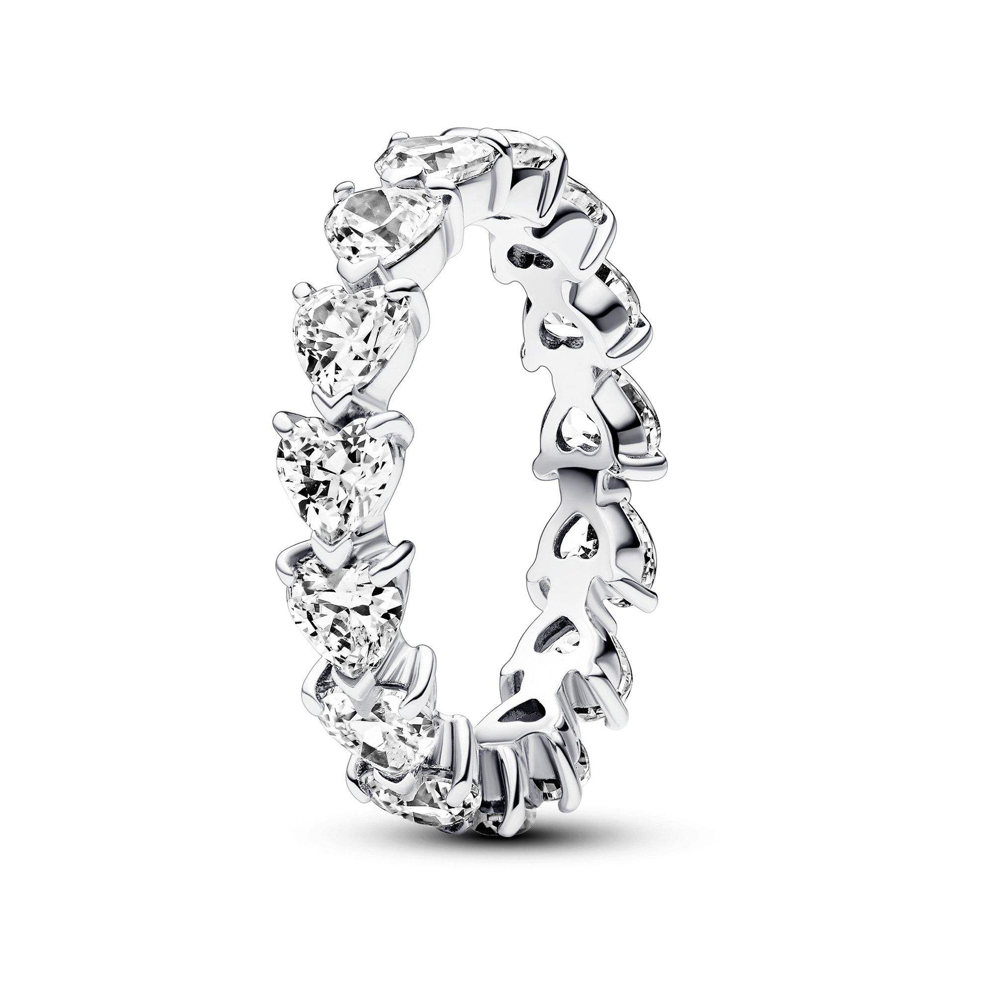 Faites une déclaration d’amour audacieuse avec la Bague Éternité Rangée de Cœurs. Les pierres en forme de cœur et les griffes en V se répètent pour créer cette bague éternité scintillante – une version contemporaine du sertissage classique en cœur. Portez-la comme un symbole de l’amour éternel ou superposez-la à nos autres bagues éternité Pandora Timeless pour un maximum d’éclat. S'associe parfaitement aux Créoles Cœur Scintillant pour un style chic à l'occasion de la Saint-Valentin.