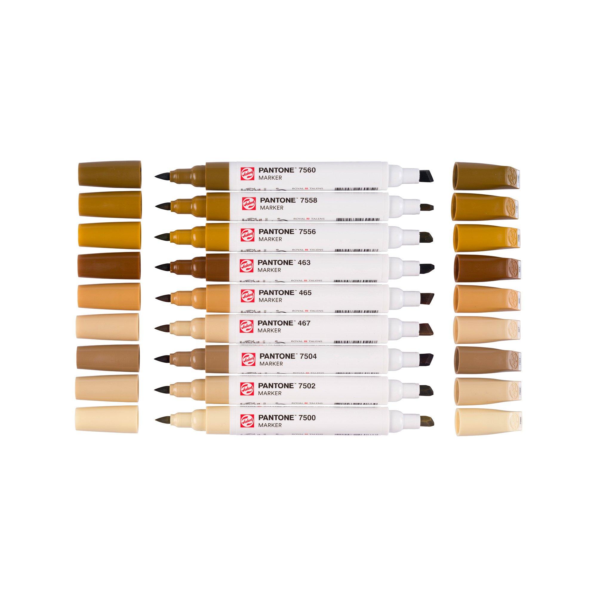 Esquissez, dessinez et créez avec les marqueurs Pantone de Talens dans les couleurs Pantone ! Ces marqueurs de haute qualité sont basés sur le Pantone Matching System et contiennent de l'encre pigmentée à base d'eau dans des couleurs vives. Soigneusement formulés, adaptés et testés par Talens, co-créés et approuvés par Pantone. Ce set contient 9 marqueurs Talens Pantone et est livré dans un coffret robuste au design horizontal élégant, de sorte que vos marqueurs soient toujours prêts à l'emploi et que l'encre s'écoule de manière optimale dans les deux pointes. Grâce aux noms et aux numéros des couleurs sur les capuchons des marqueurs, vous avez rapidement la bonne couleur à portée de main pour votre travail. Mettez vos idées en pratique et découvrez toutes les possibilités ! Chaque marqueur possède deux pointes pour une flexibilité ultime : une pointe pinceau pour les détails et les lignes précises, et une pointe biseau pour les traits larges et les blocs de peinture épais. L'encre sèche rapidement et résiste à l'eau une fois sèche, ce qui la rend parfaite pour l'application en couches. Utilisez les marqueurs sur le papier unique Talens Pantone pour une correspondance optimale avec les couleurs Pantone. Si votre marqueur est à court d'encre, il suffit de le remplir avec l'encre pour marqueur de Talens Pantone de la même couleur ! Les deux sont disponibles dans une large palette de 108 couleurs, ce qui vous permet de laisser libre cours à votre créativité.