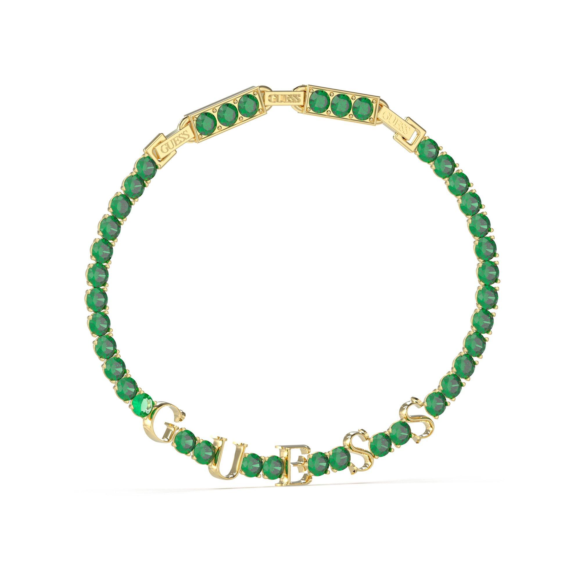 "Le bracelet pour femmes "" Arm Party "" de Guess en acier inoxydable de haute qualité en vert offre une longueur réglable de 14,6 cm à 18,4 cm pour un ajustement optimal. Un bracelet subtil qui incarne un goût moderne discret et souligne avec charme votre style personnel. "