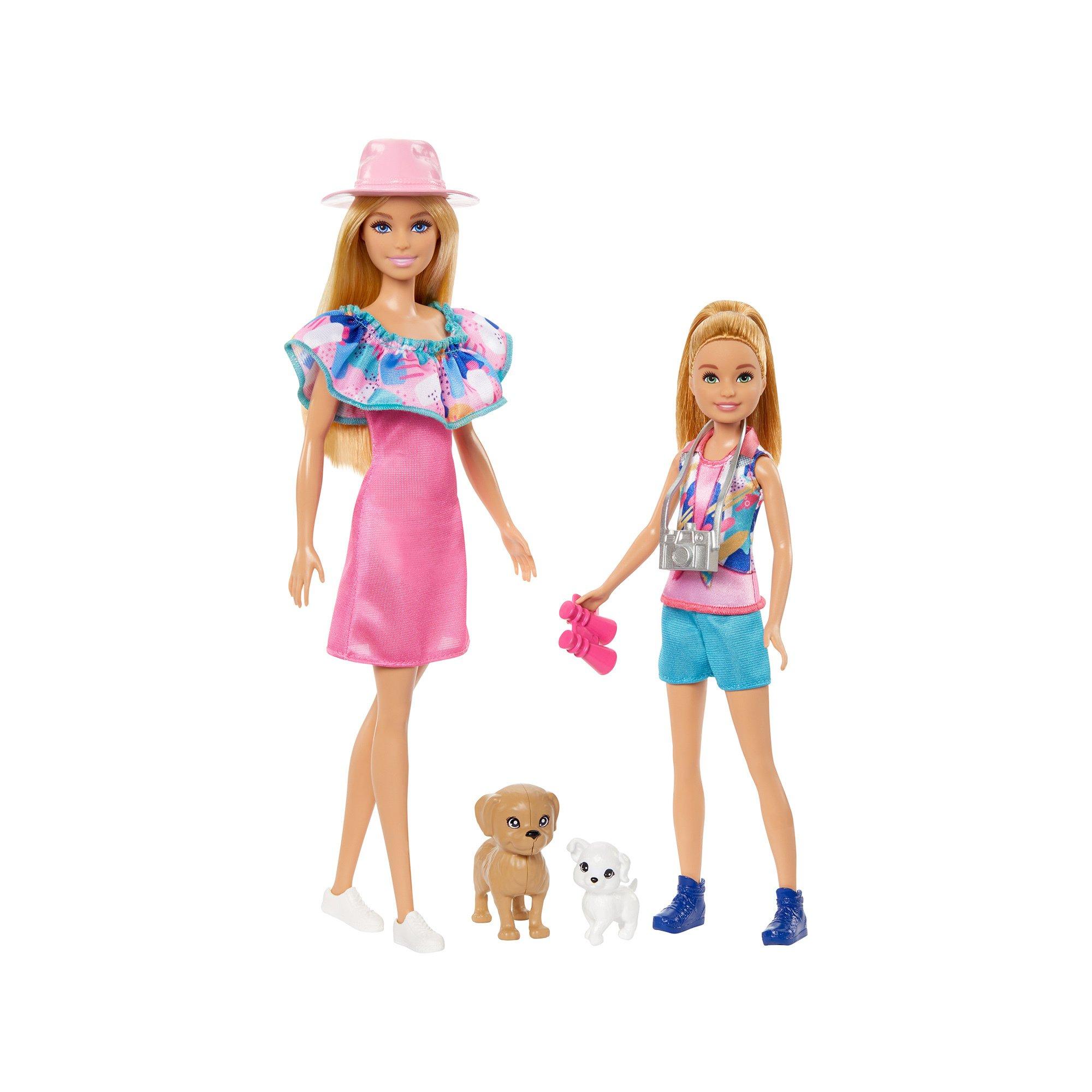 Barbie et Stacie sont prêtes pour des aventures estivales ! Comme dans le film Barbie and Stacie to the Rescue, Barbie, la grande sœur, porte une robe à épaules dénudées avec col à volant. Stacie, la petite sœur sportive, porte un haut et un short colorés. Deux chiots et des accessoires tels qu’un appareil photo, des jumelles et un chapeau sont fournis avec ce duo de poupées. De quoi stimuler le goût de l’exploration ! Les poupées ne tiennent pas debout toutes seules. Les couleurs et les décorations peuvent varier.