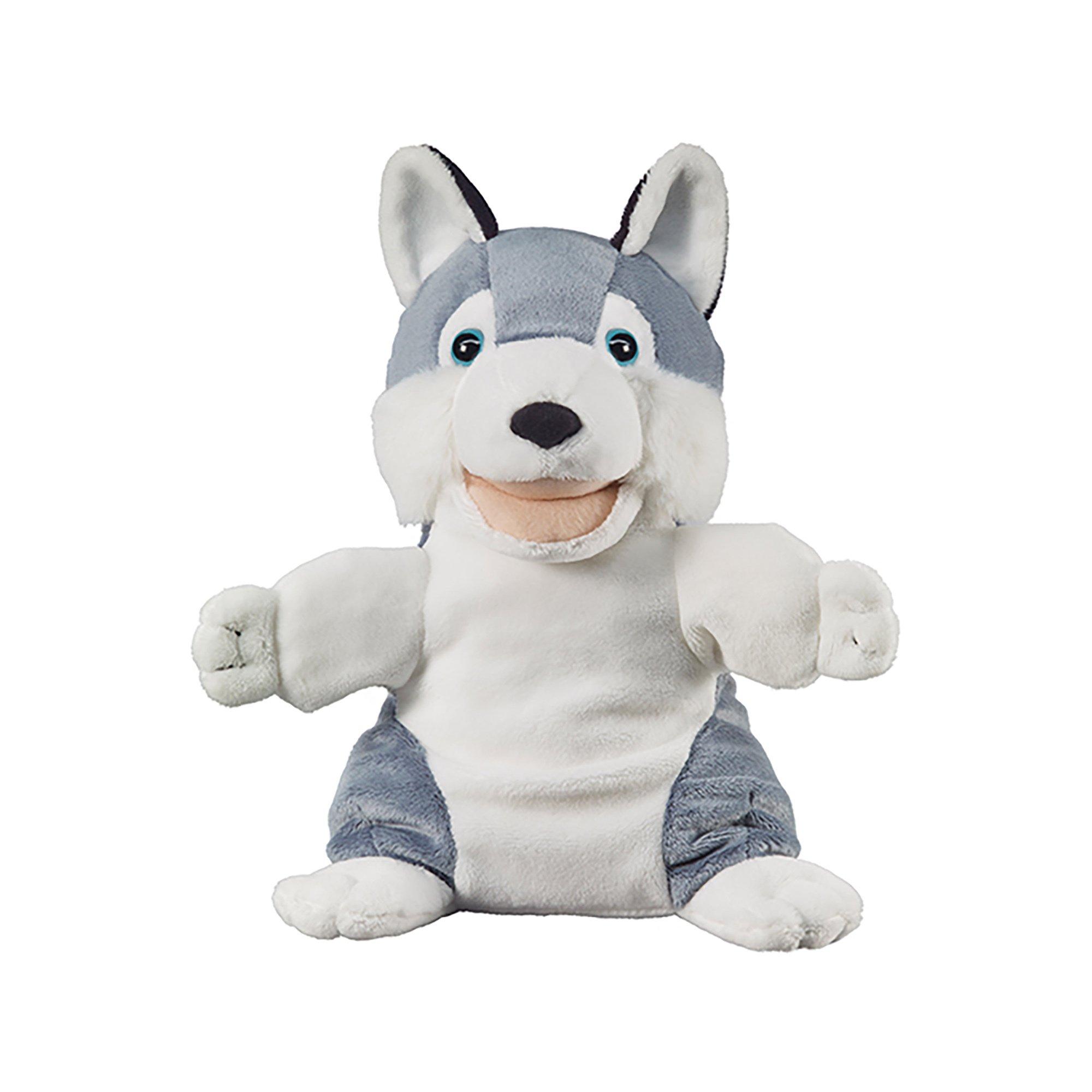 Laissez votre imagination courir sauvage. Avec cette marionnette Husky vous pouvez démarrer votre propre théâtre. Cette Marionette est également doux et câlin.