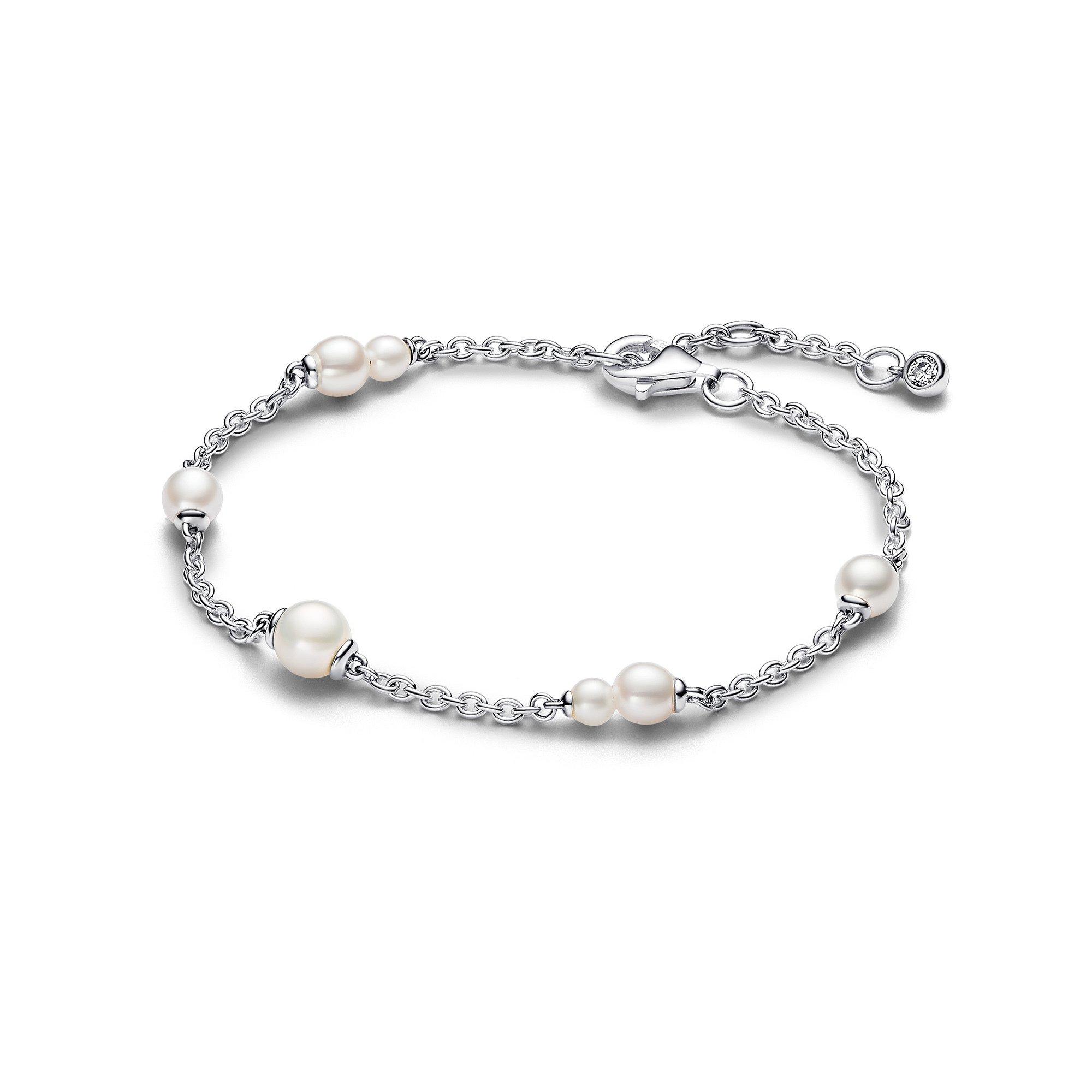 Rehaussez votre tenue d'une touche captivante avec notre Bracelet Chaîne Station Perle de Culture d'Eau Douce Traitée en argent 925/1000e. Sept perles d’eau douce traitées de tailles différentes sont élégamment espacées le long de la chaîne, créant un bijou intemporel et polyvalent. L’association et l’espacement intentionnels reflètent la beauté de l’individualité. Avec son fermoir réglable et son oxyde de zirconium cubique ajoutant une touche d'éclat, ce bracelet célèbre les perles classiques de la collection Pandora Timeless. Veuillez noter que chaque perle de culture d’eau douce traitée est unique et peut présenter des variations au niveau de sa taille et de sa couleur. De plus, une usure normale peut se produire avec ce matériau. Nos perles de culture d’eau douce sont traitées avec un traitement de blanchiment et d’accentuation de l'éclat.