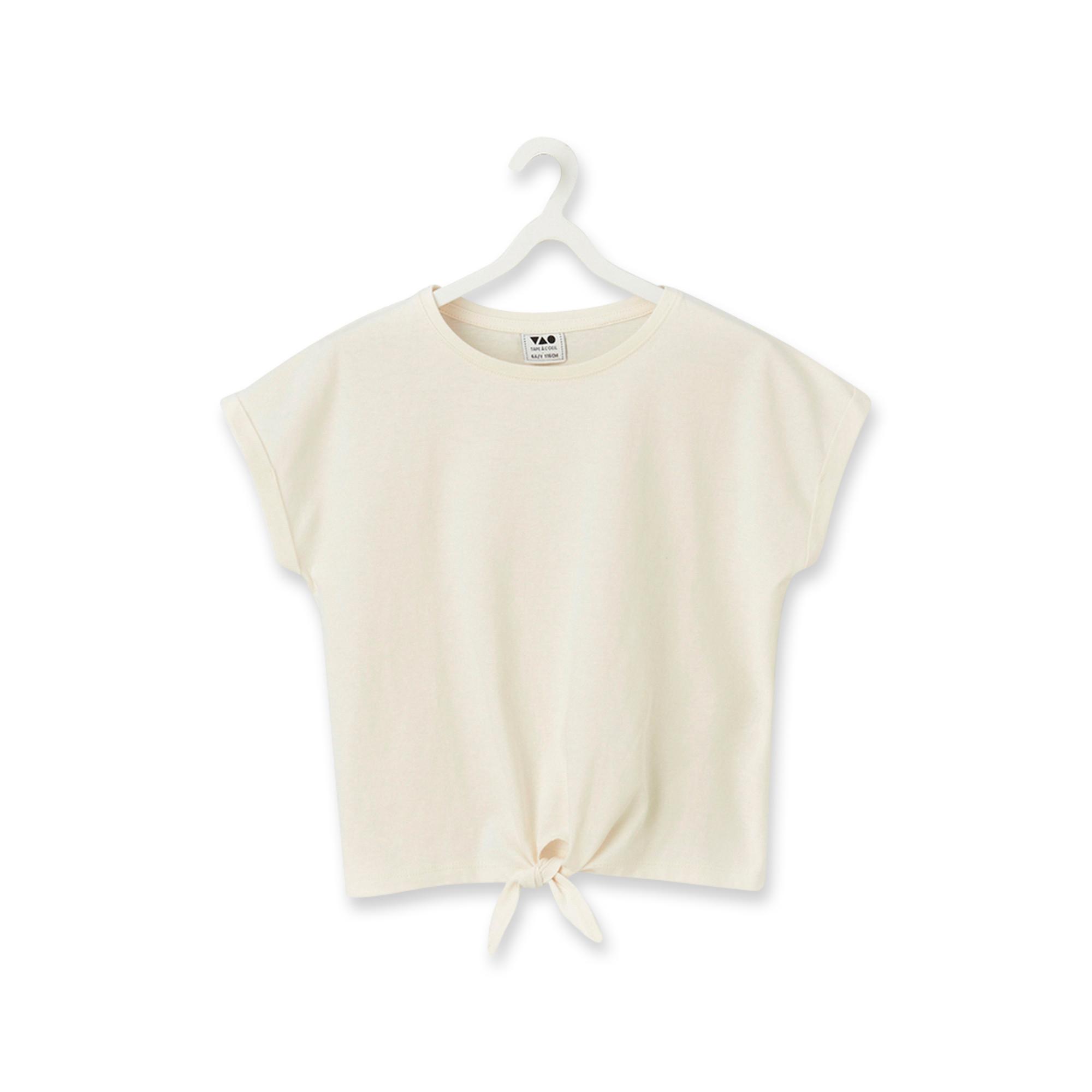 ce T-shirt sera un must pour la tenue de votre fille ! Elle sera ravissante dans ce T-shirt. Combinez-le avec une jupe fleurie pour plus de style. T-shirt à manches courtes et encolure arrondie. Coton biologique Boucle sur le devant