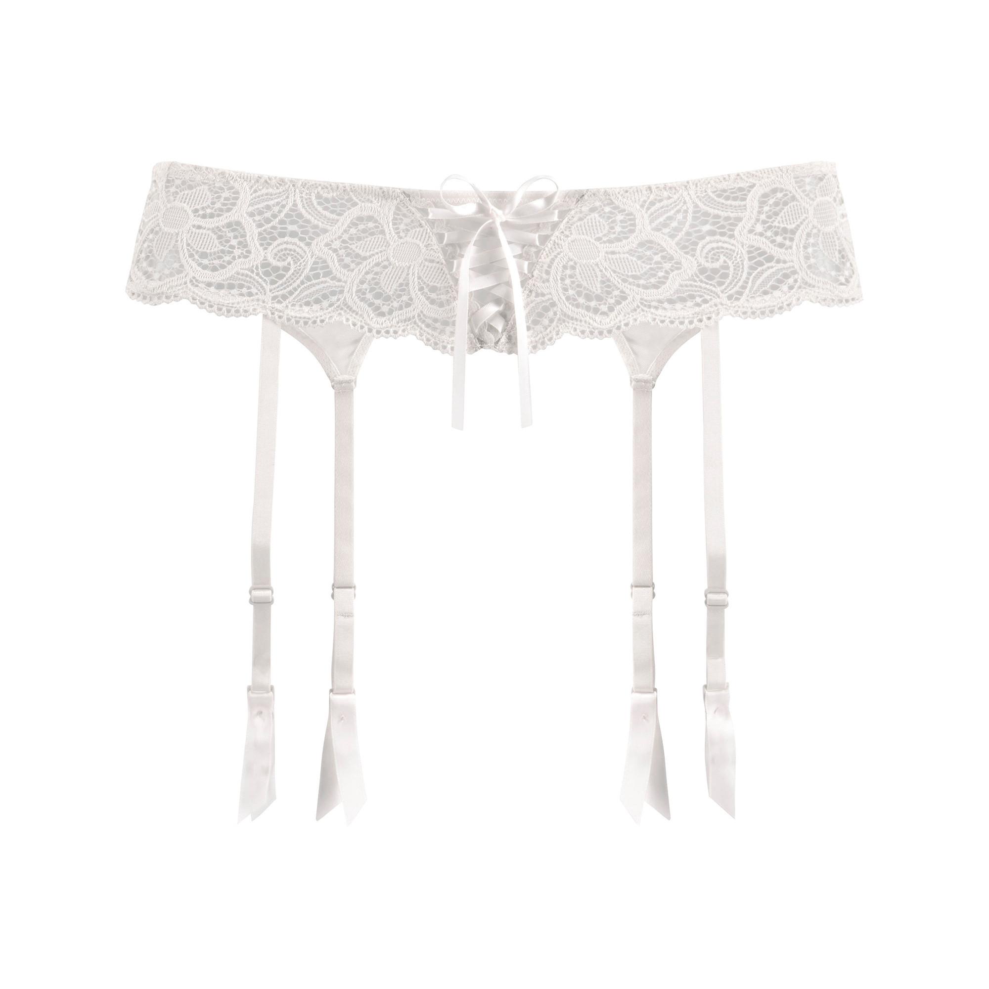 Ce porte-jarretelles féminin est confectionné en dentelle transparente, offrant une esthétique sophistiquée et séduisante. Le devant est orné d'un laçage décoratif en satin, ajoutant une touche de charme classique. Les bretelles réglables individuellement assurent un ajustement confortable et sûr. Des sous-vêtements et soutiens-gorge assortis de la même série sont disponibles.