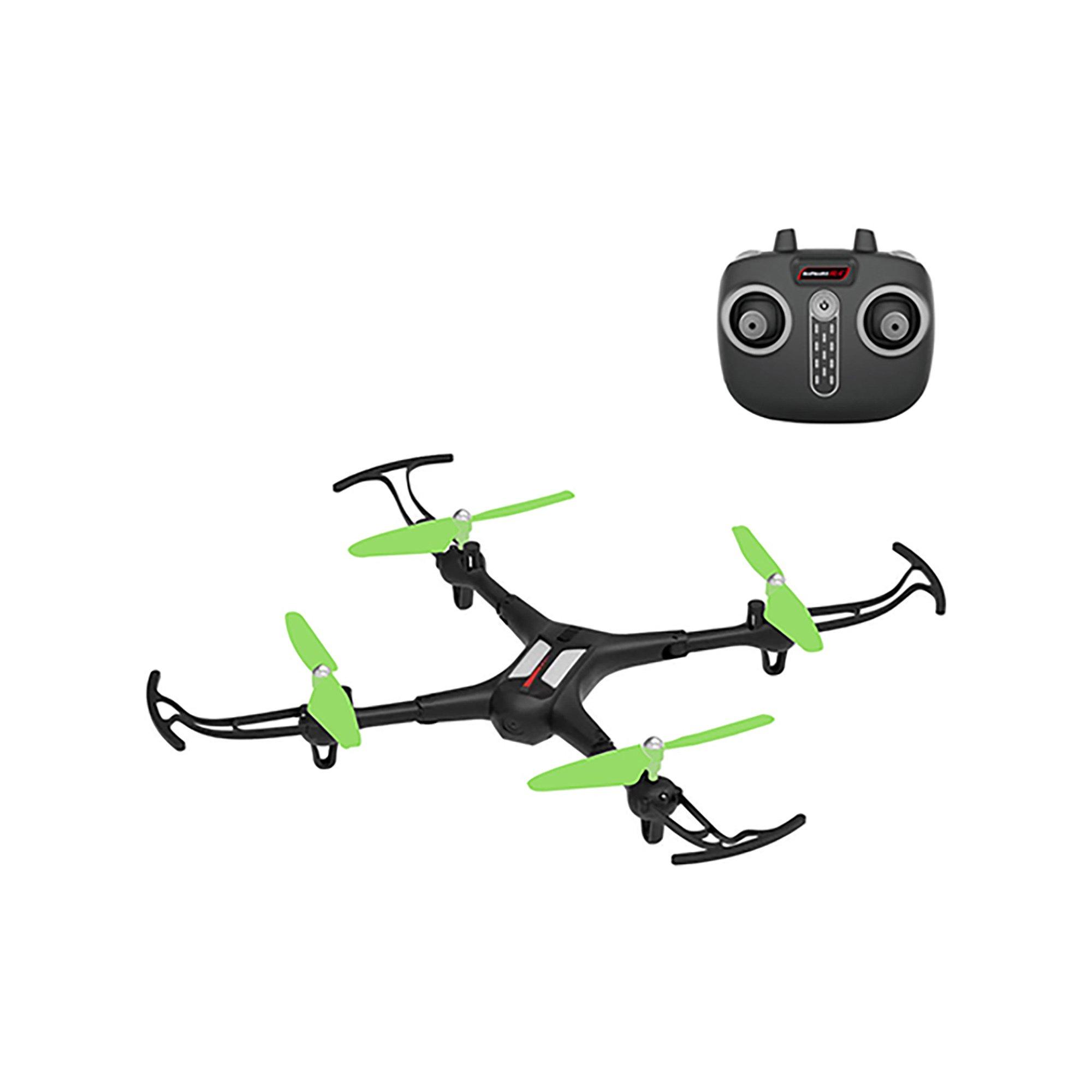 Drone à 4 canaux avec gyroscope à 6 axes, deux niveaux de vitesse différents, adapté à l'intérieur et à l'extérieur, retournement à 360 degrés, fonction d'atterrissage et de décollage automatique, avec transmission de caméra WIFI FPV vers smartphone, peut être piloté via l'application ou la télécommande. Temps de chargement environ 60 minutes, temps de lecture environ 12 minutes. Contrôle à distance 30 mètres. Avec batterie 3,7 V pour drone, sans 4x AA pour la télécommande.