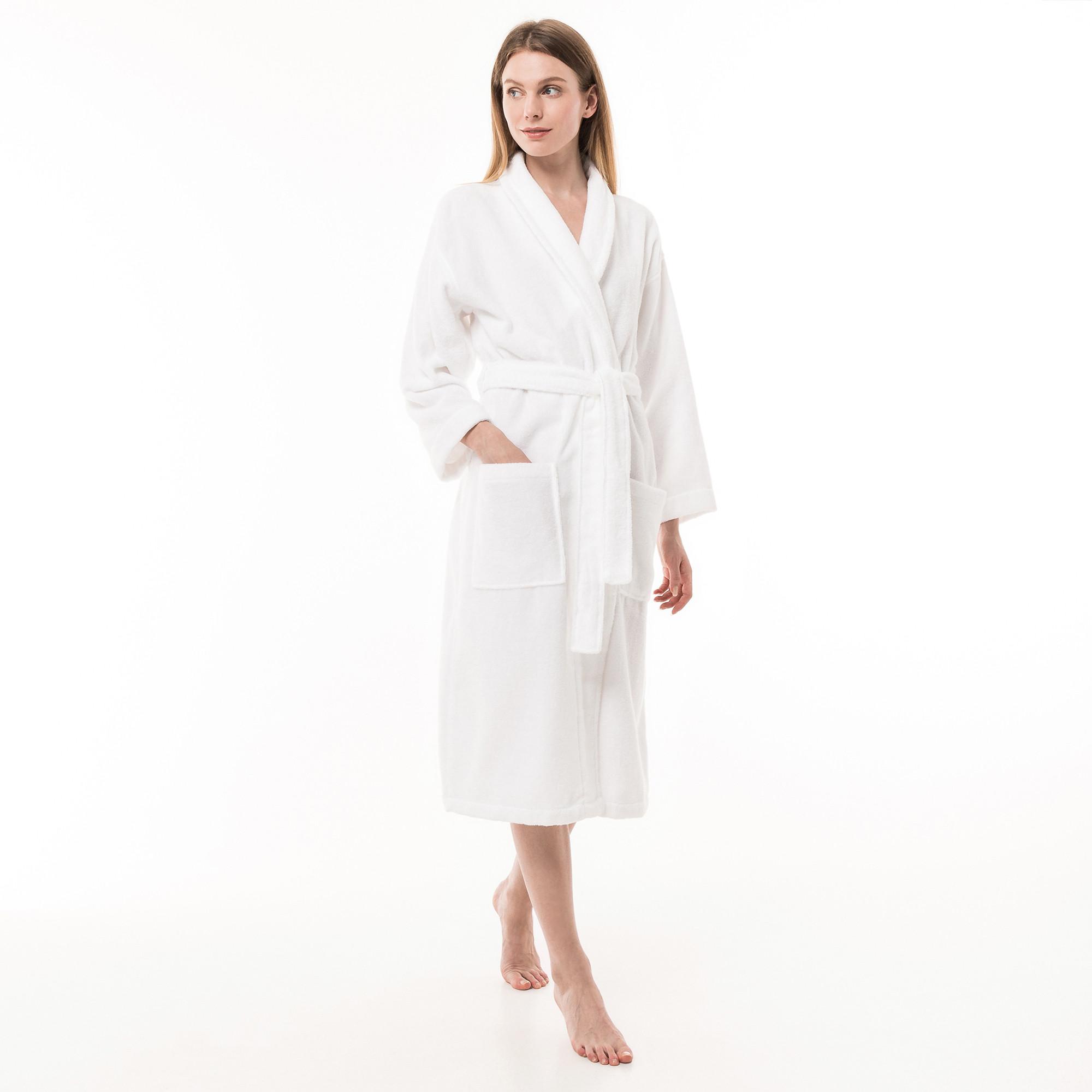 Le peignoir unisexe Manor est en éponge douce et absorbante en pur coton. De couleur unie, avec un large col châle et des poches plaquées, c'est un accessoire élégant pour les moments de détente.