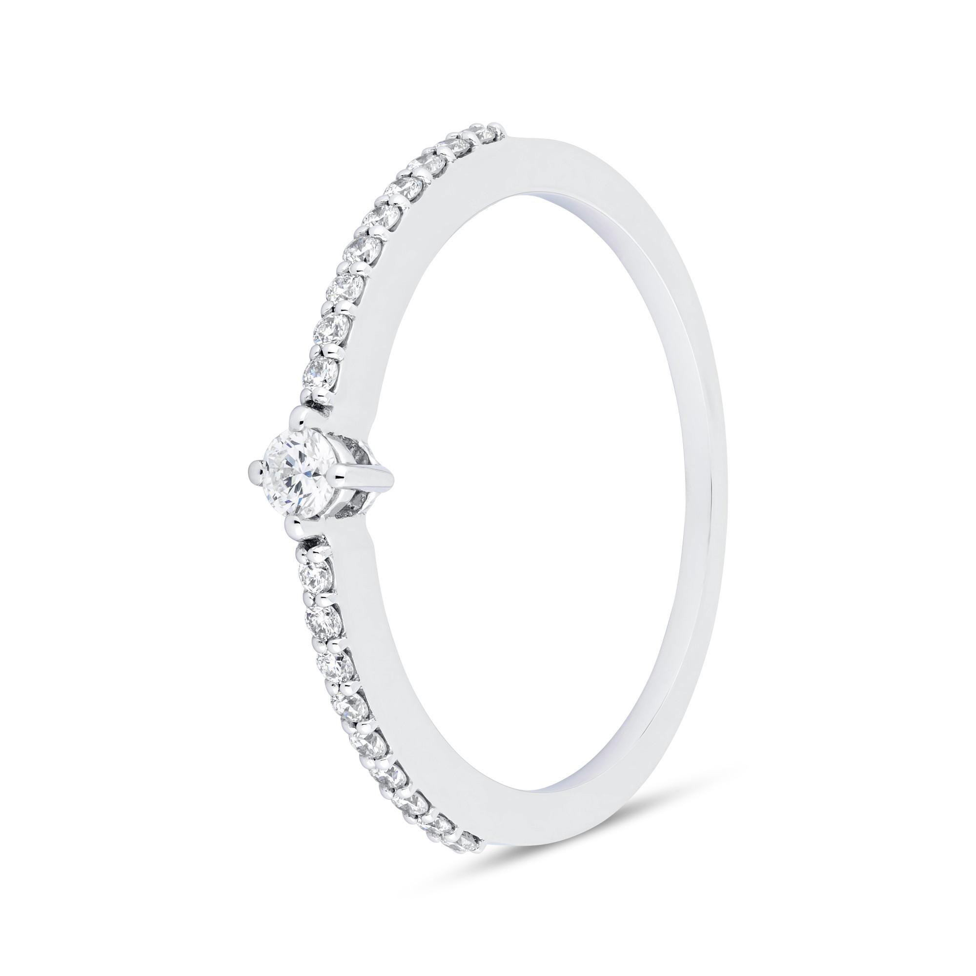 Cette bague de Zen Diamond est en or blanc de haute qualité. Avec un total de 19 diamants taille brillant qui se concentrent sur le diamant central sur le rail annulaire fin, ce bijou est le bon choix pour les moments solennels de la vie.