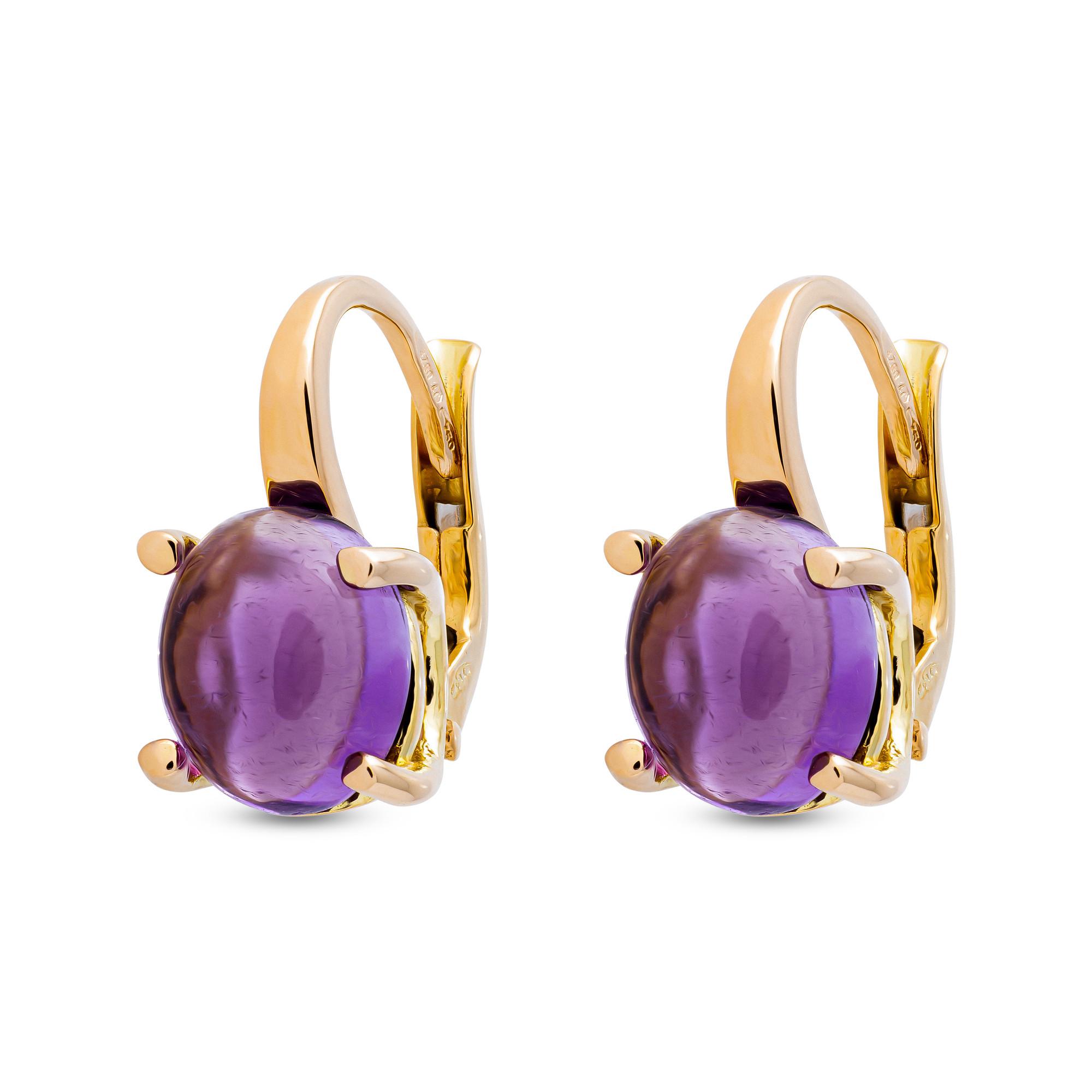 Ces boucles d'oreilles de L'Atelier Gold 18 Karat by Manor sont en or jaune 18 carats. L'améthyste rectangulaire a des bords arrondis et est transparente. Les fermetures à pression au dos se ferment facilement et en toute sécurité.