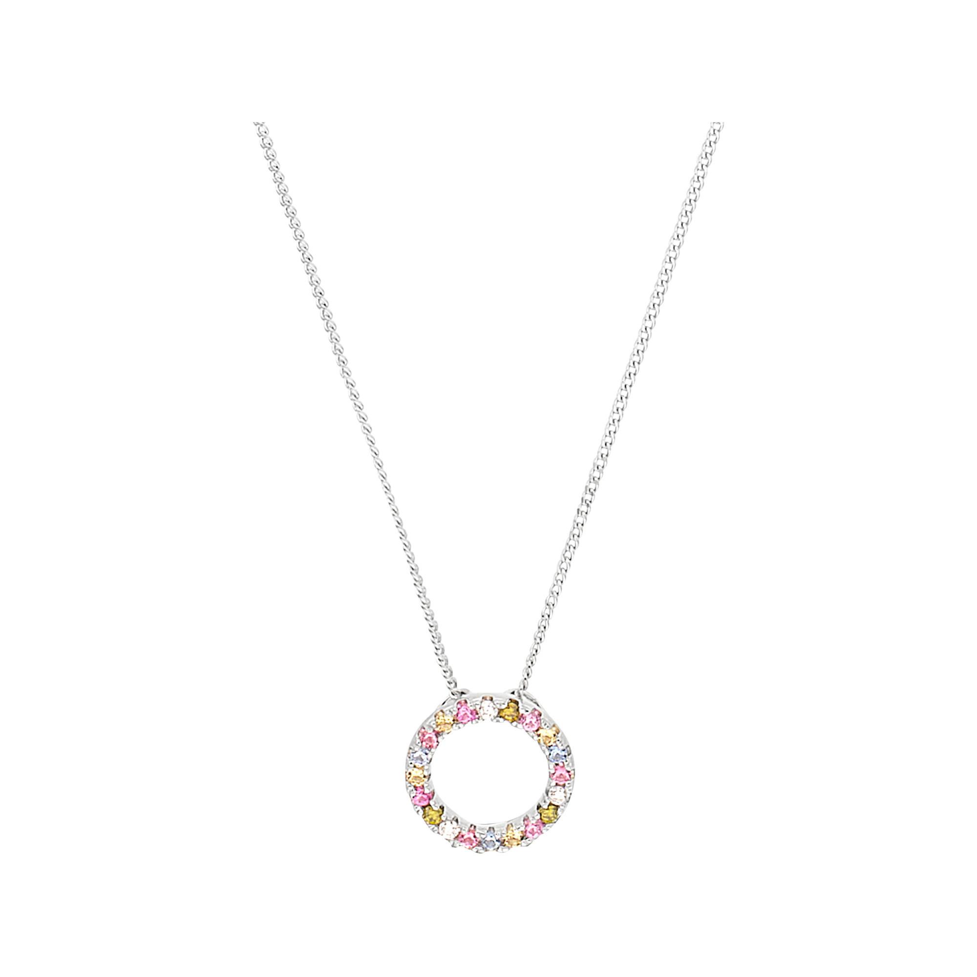 Un collier à ancre ronde réglable en argent sterling 925 rhodié, avec un pendentif au design arc-en-ciel étincelant serti de pierres de zirconium synthétiques. Comprend un fermoir mousqueton.