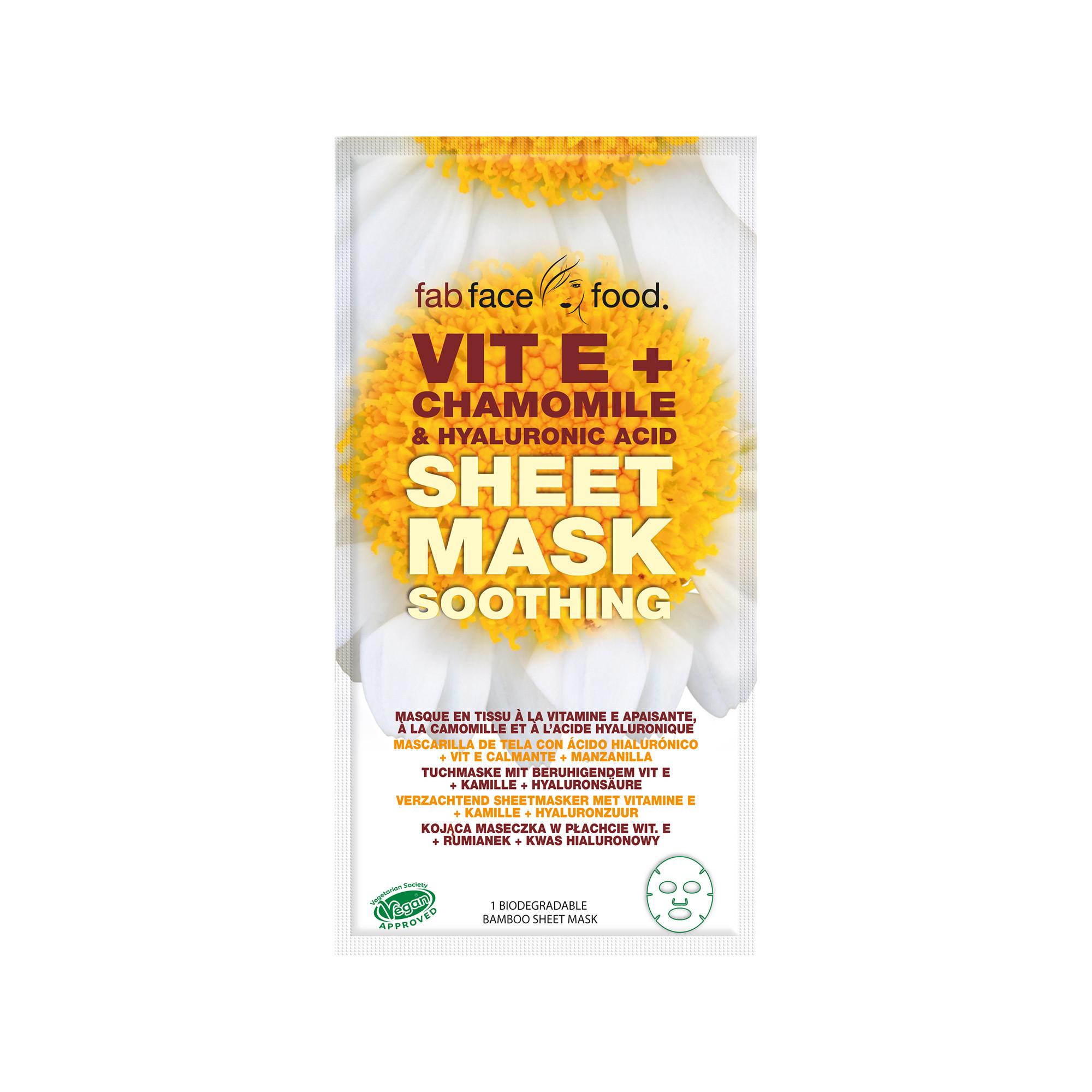 Ce masque en tissu biodégradable à la vitamine E, à la camomille et à l'acide hyaluronique, aide à protéger les peaux sensibles des dommages et hydrate intensément la peau.