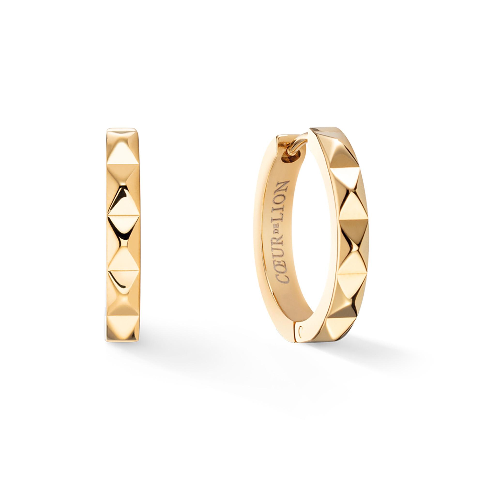 Découvrez ces nouveaux essentiels en or - dans un design de rivets ou de pointes tendance. Les créoles sont parfaites au quotidien ou pour l'empilement de boucles d'oreilles tendance. Combinez ces créoles avec vos autres bijoux COEUR DE LION pour créer toujours un nouveau look passionnant. Les bracelets et les bagues sont assortis dans le même design.