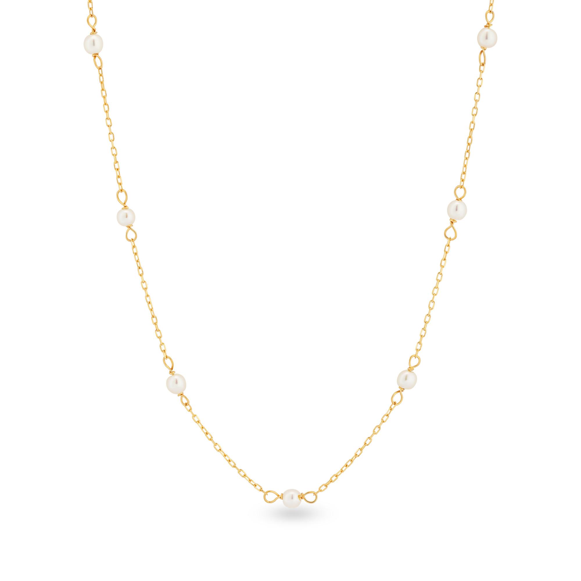 Ce collier à maillons fins de Puro en or jaune 18 carats et perles d'eau douce est une œuvre d'art. Ce bijou raffiné se ferme en toute sécurité par un anneau élastique.