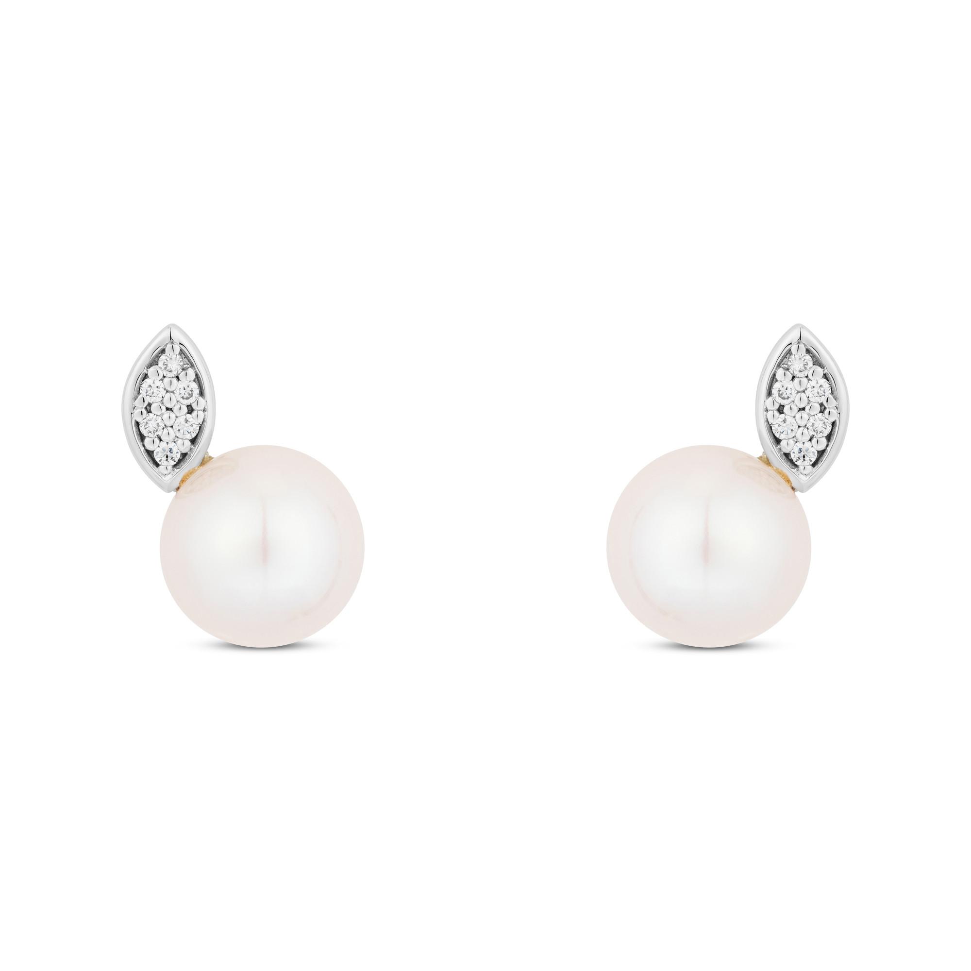 Ces boucles d'oreilles de Puro sont en or blanc. Une perle d'eau douce est munie d'une feuille stylisée sertie de brillants. Les boucles d'oreilles se ferment en toute sécurité et facilement avec des fermetures papillon.