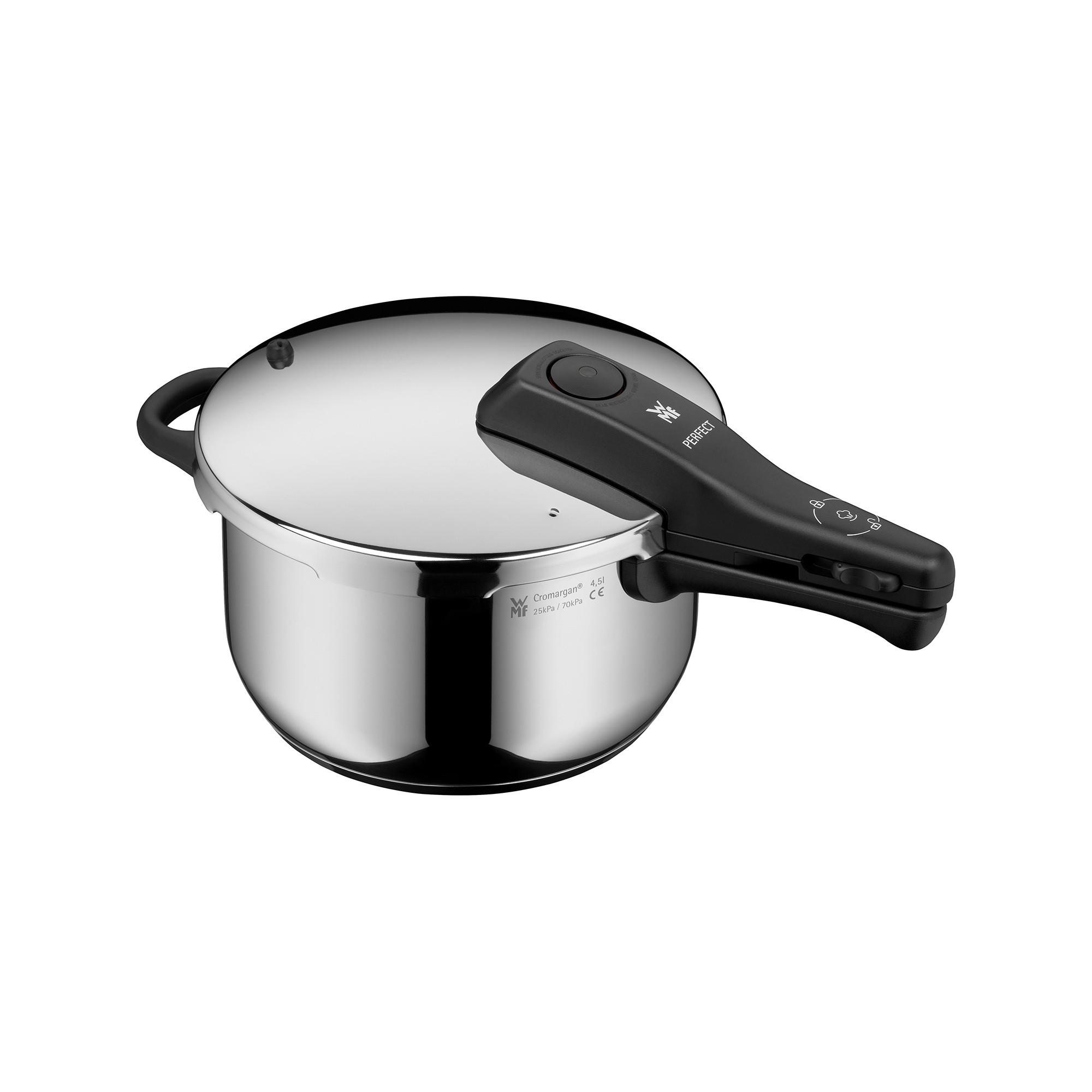 Rapide et sain - simplement parfait ! Les autocuiseurs de WMF enthousiasment par leurs temps de cuisson très courts et leurs résultats riches en goût. Jusqu'à 70% plus rapides que les casseroles traditionnelles, elles permettent de réussir du chili con carne, de délicieux risottos de toutes sortes, des soupes, des currys et même de délicieux desserts. De plus, la quantité de vitamine C conservée est jusqu'à 1,7 fois supérieure. Le Perfect One Pot est particulièrement facile à utiliser et, grâce à un système de sécurité en 7 étapes avec une fonction d'évaporation extra douce, il est absolument sûr et confortable à manipuler. Fabriqué en Cromargan® : acier inoxydable 18/10 aussi résistant que noble et adapté au lave-vaisselle, l'autocuiseur Perfect dispose en outre d'un fond TransTherm® tous feux adapté à tous les types de cuisinières avec une répartition et une accumulation optimales de la chaleur pour une cuisson économe en énergie.