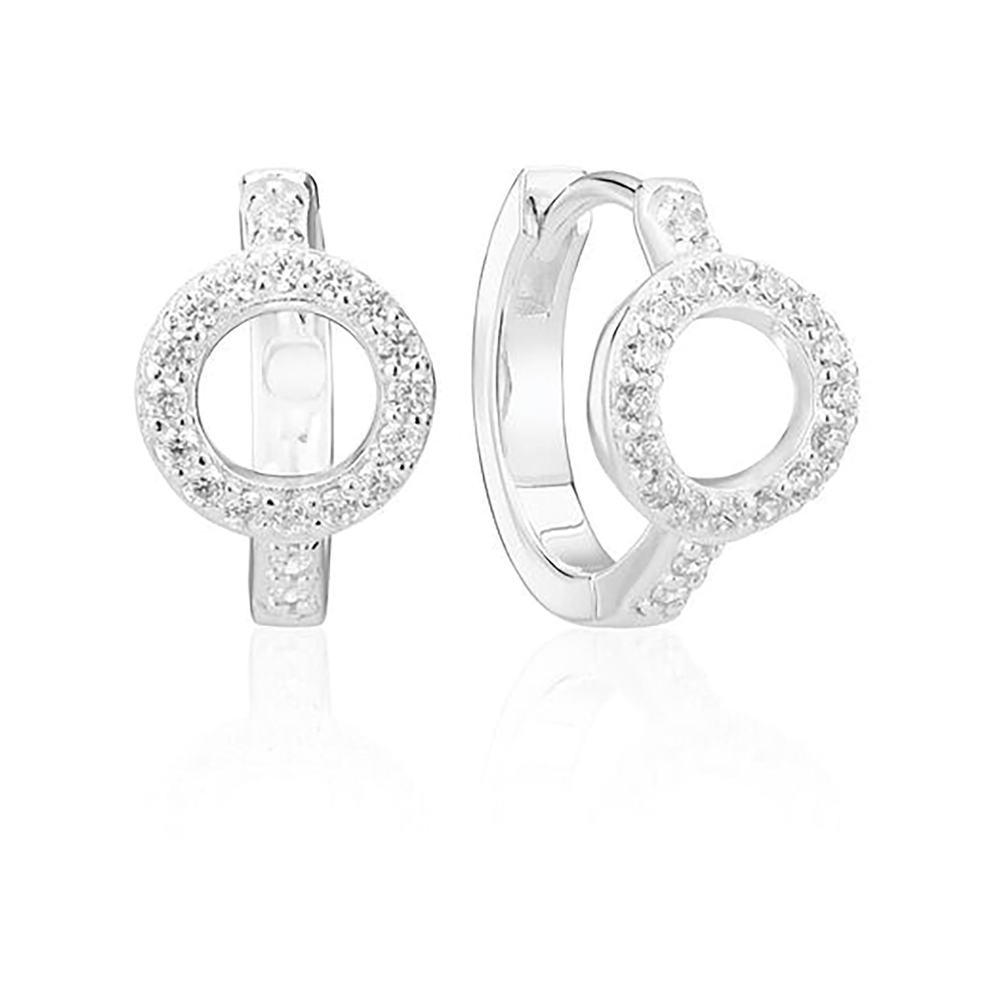 Boucles d'oreilles en argent sterling 925 plaqué rhodium avec surface polie, serties de pierres de zirconium blanches à facettes.