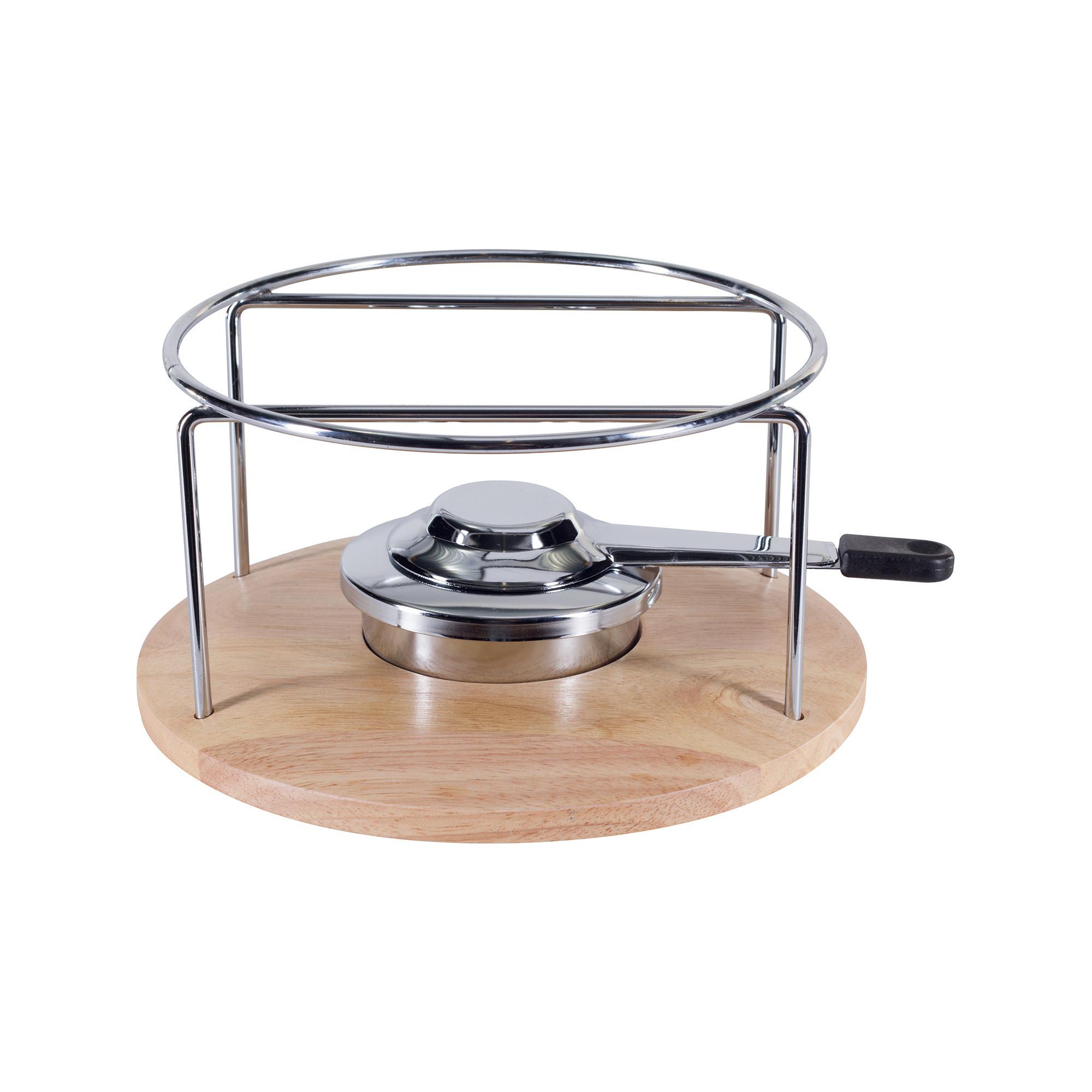 Fabriqué en acier inoxydable de haute qualité et doté d'une soucoupe en bois de hêtre, ce réchaud se présente comme un accessoire élégant sur votre table. Le brûleur à pâte rempli assure une utilisation confortable sans préparation supplémentaire.