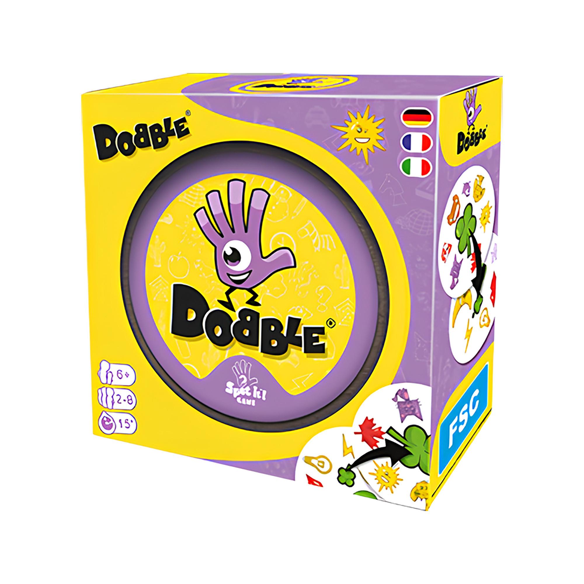 Dobble est un jeu de cartes rapide pour petits et grands. Dans cette édition plus durable du jeu familial classique, de nombreux symboles différents vous attendent. Dans ce jeu de fête, choisissez 1 des 5 différentes variantes de jeu et commencez à jouer. Découvre les cartes et regarde rapidement quel symbole est identique sur 2 cartes.