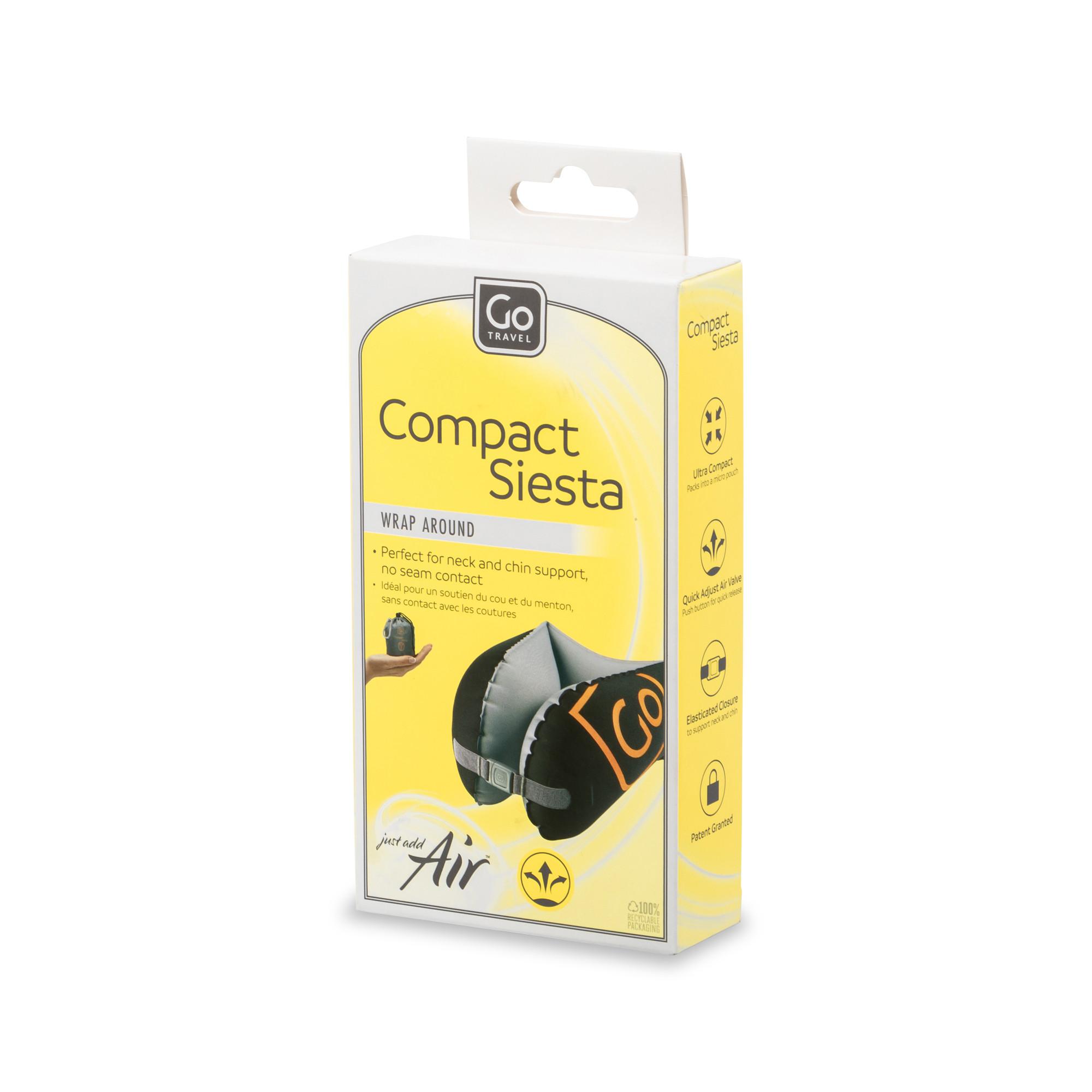 Cet oreiller de voyage gonflable de Go Travel soutient le cou et le menton grâce au design breveté sans contact avec la couture. En cas de non-utilisation, l'oreiller est rangé dans un sac pratique avec cordon de serrage et mousqueton.
