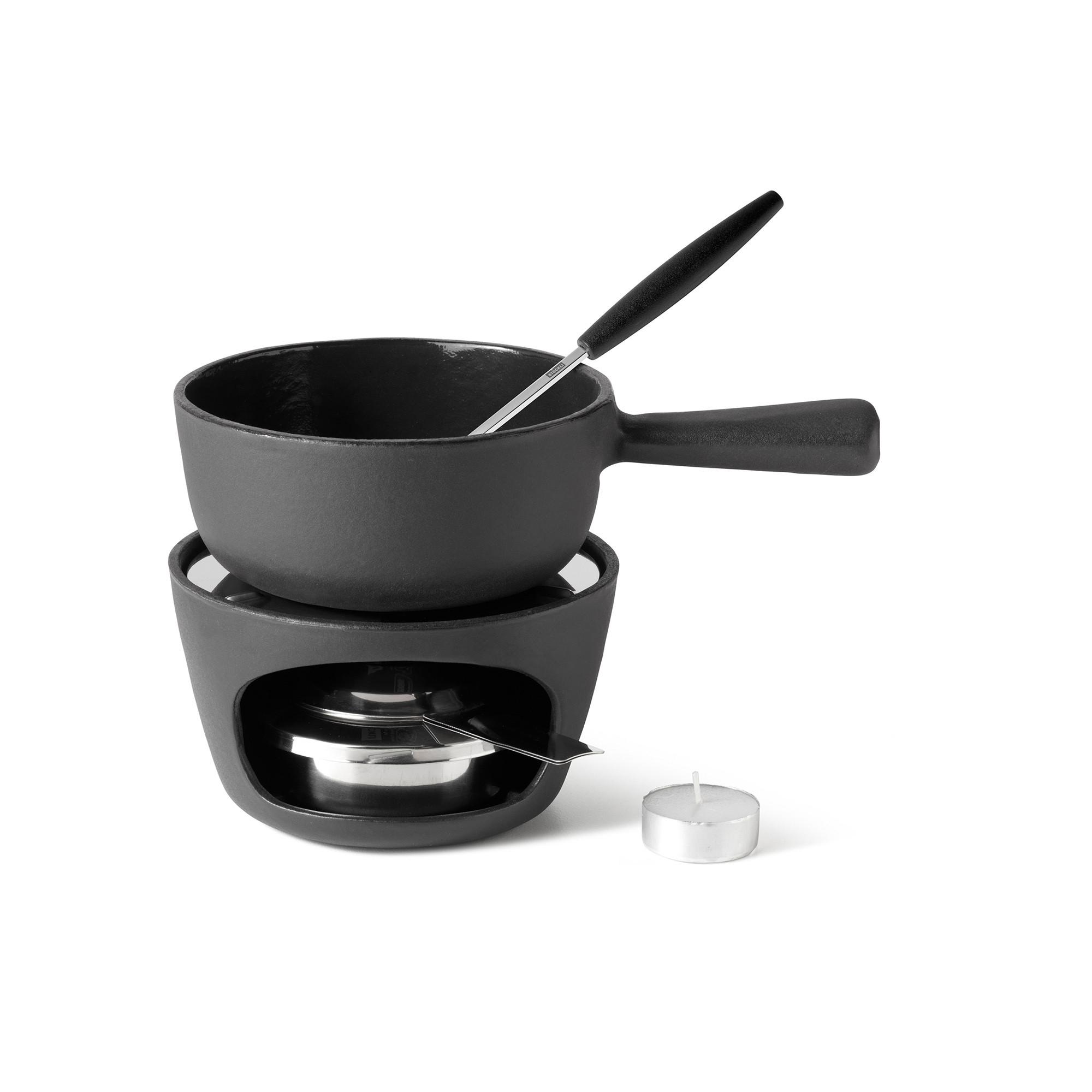 Le caquelon classique en fonte de fer. Robuste et compatible pour l’induction, résistant au lave-vaisselle, contenance 0,7 l pour 1-2 pers. Réchaud stasble en fonte de fer. Y compris brûleur de sécurité à pâte, une fourchette à fondue au fromage et une bougie de réchaud.