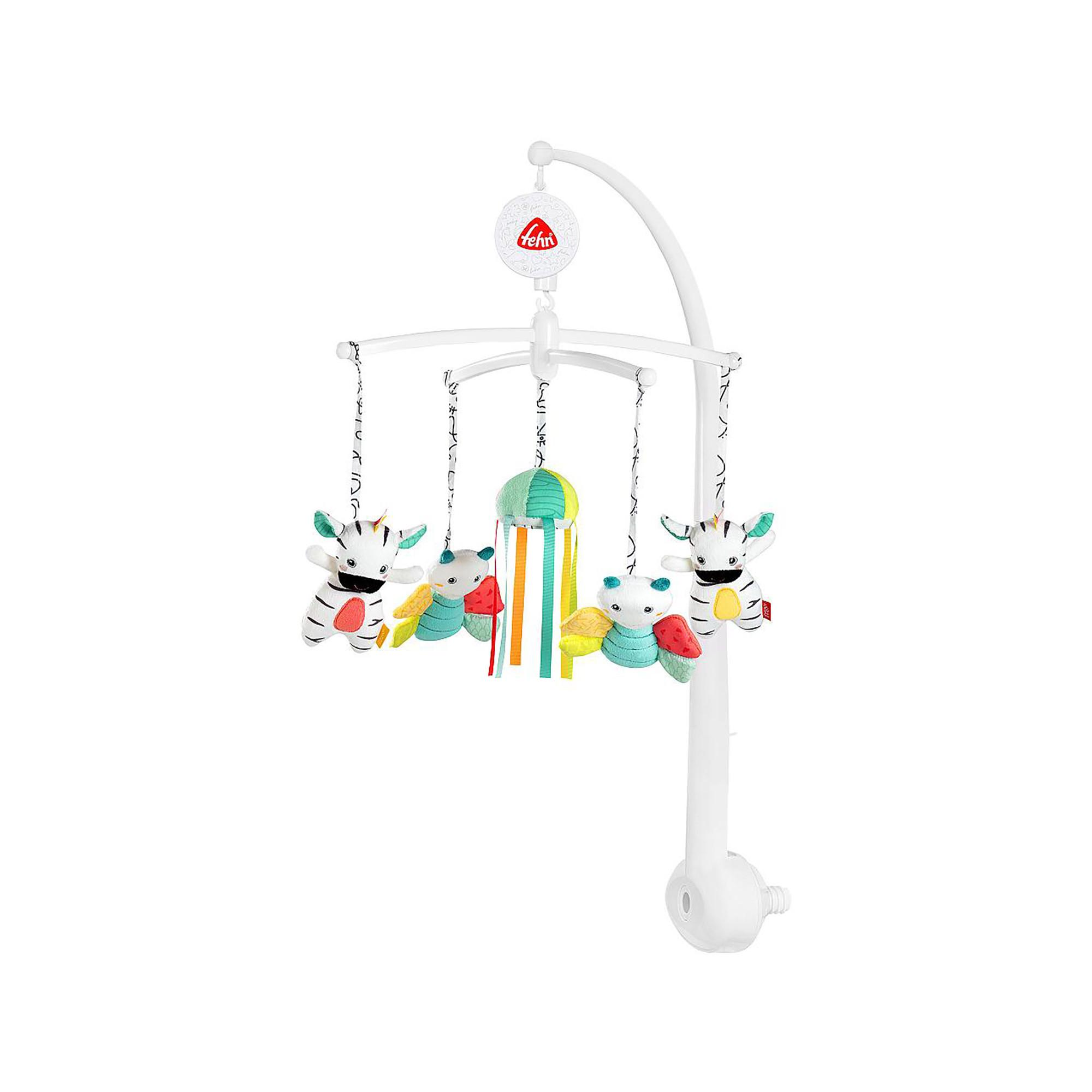 Mobile musical avec boîte à musique Mélodie « Berceuse de Mozart » et chiffres – Aide à l'endormissement pour l'apaisement et l'activité – Avec attache de lit pour bébé de 0 à 5 mois Le mobile à figurines fait briller les yeux de bébé : les animaux DoBabyDoo sont mignons à regarder et impressionnent les bébés avec des couleurs vives et des structures intéressantes de manière ludique Les amis colorés tournent joyeusement autour de la mélodie, attirent l'attention de bébé avec des rubans colorés et le miroir et stimulent ainsi le sens de la vue et de l'ouïe de bébé ! Jouer et rêver : la boîte à musique mécanique joue la mélodie « Berceuse de Mozart » et fait danser les peluches et incite le bébé à écouter - elle peut être éteinte à tout moment grâce à l'interrupteur marche/arrêt Pratique et facile à entretenir : le design du mobile permet une fixation facile sur le lit du bébé - les figurines peuvent être facilement retirées pour jouer & se laver