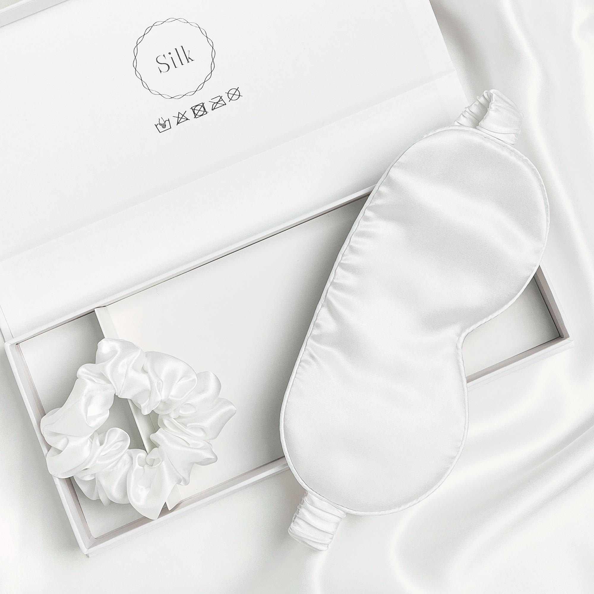 Cet ensemble cadeau de Manor contient un masque de sommeil et un élastique à cheveux, tous deux fabriqués en pure soie de mûrier. Les accessoires de couchage en satin se distinguent par un toucher particulièrement doux et une finition brillante. La conception de couleur discrète peut être facilement combinée.