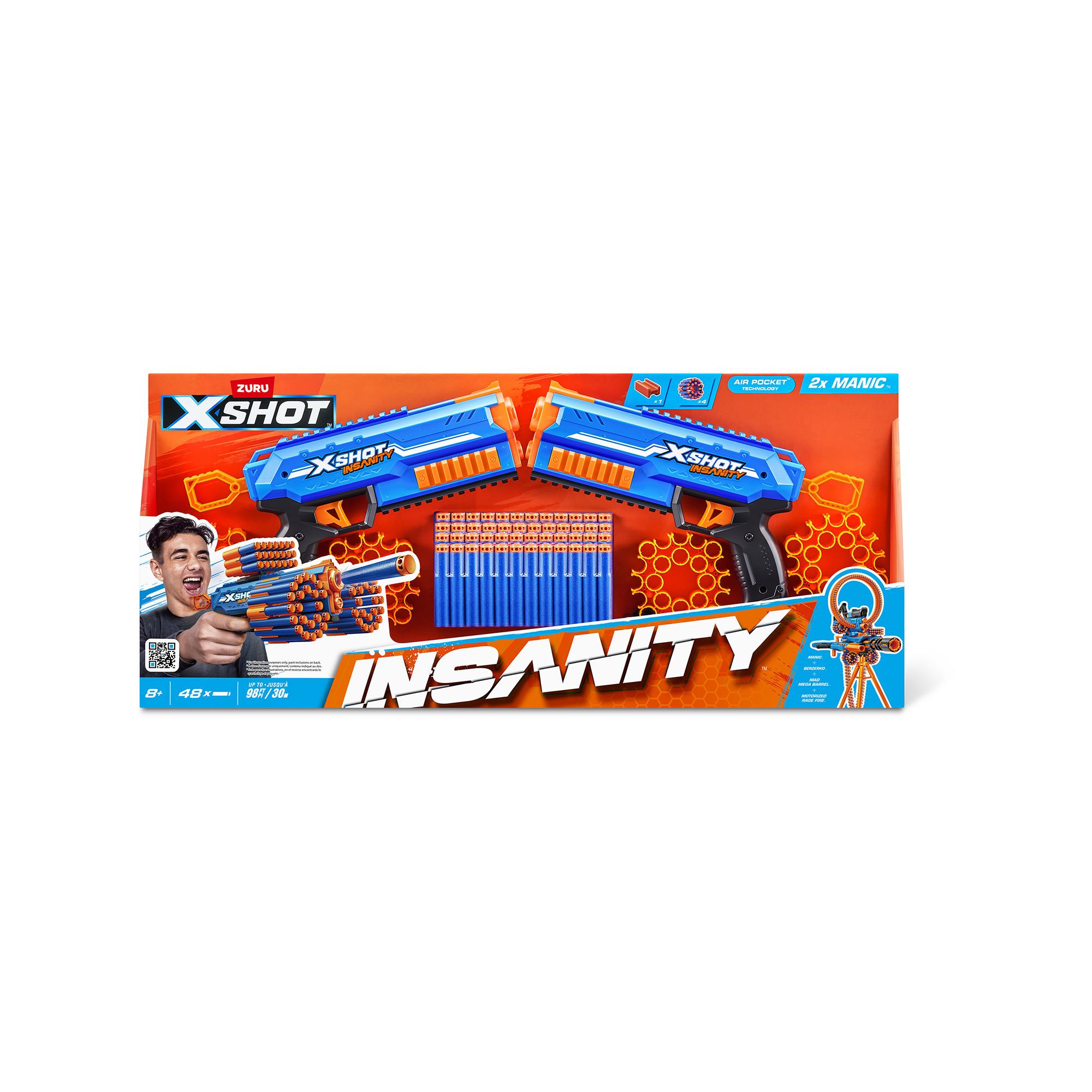 Des combos, des munitions et de l'action en folie avec XSHOT Insanity ! Le Manic a une capacité d'une seule fléchette et des quantités folles de fléchettes stockées, vous ne serez jamais laissé vide au milieu de la bataille. Le Manic peut atteindre des cibles jusqu'à 30 m de distance et comprend des fléchettes à poche d'air.