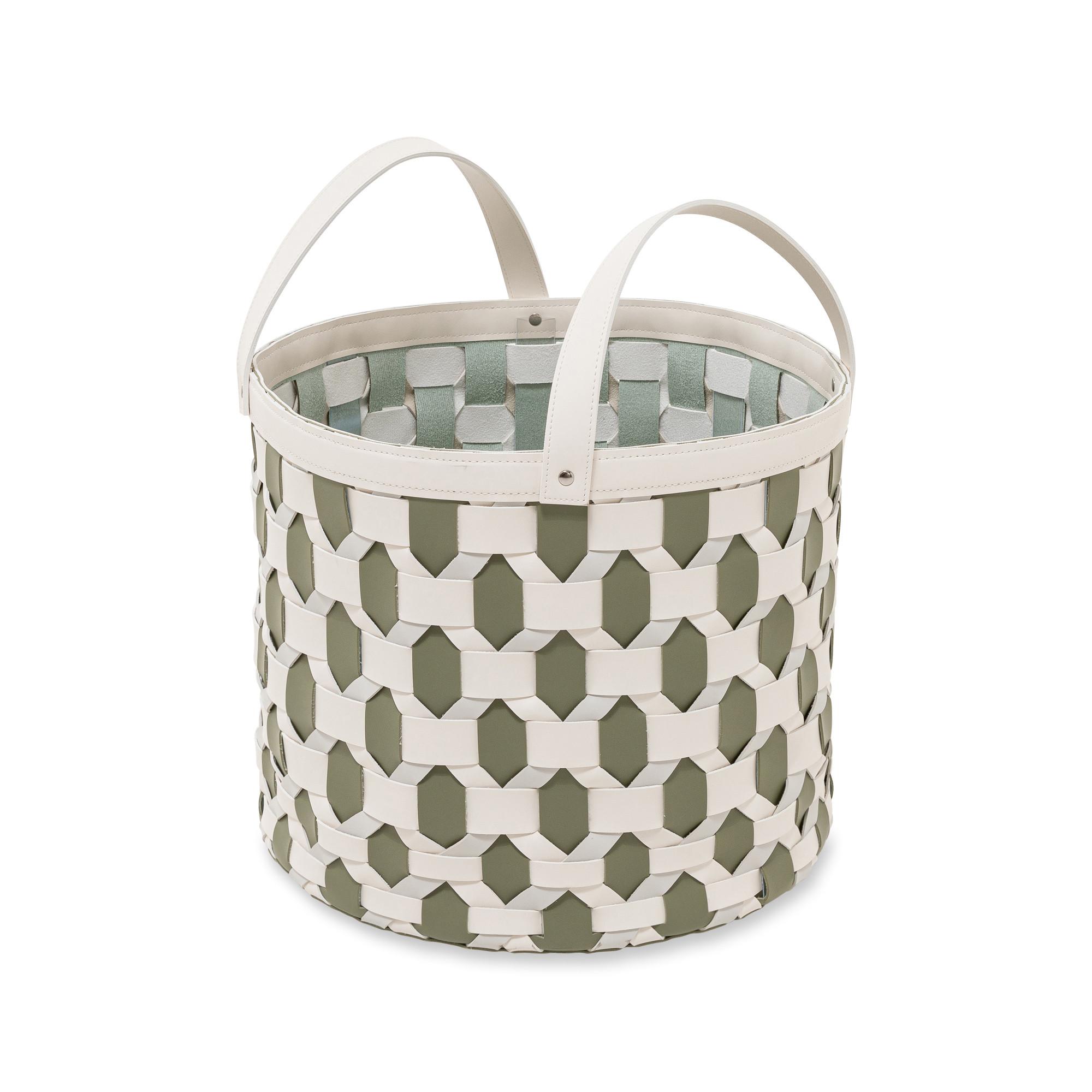 Ce panier tressé avec des poignées de transport mobiles et un fond stable est un accessoire de maison simple et moderne, conçu pour un design d'intérieur individuel. Le panier est disponible en différentes couleurs et formats.