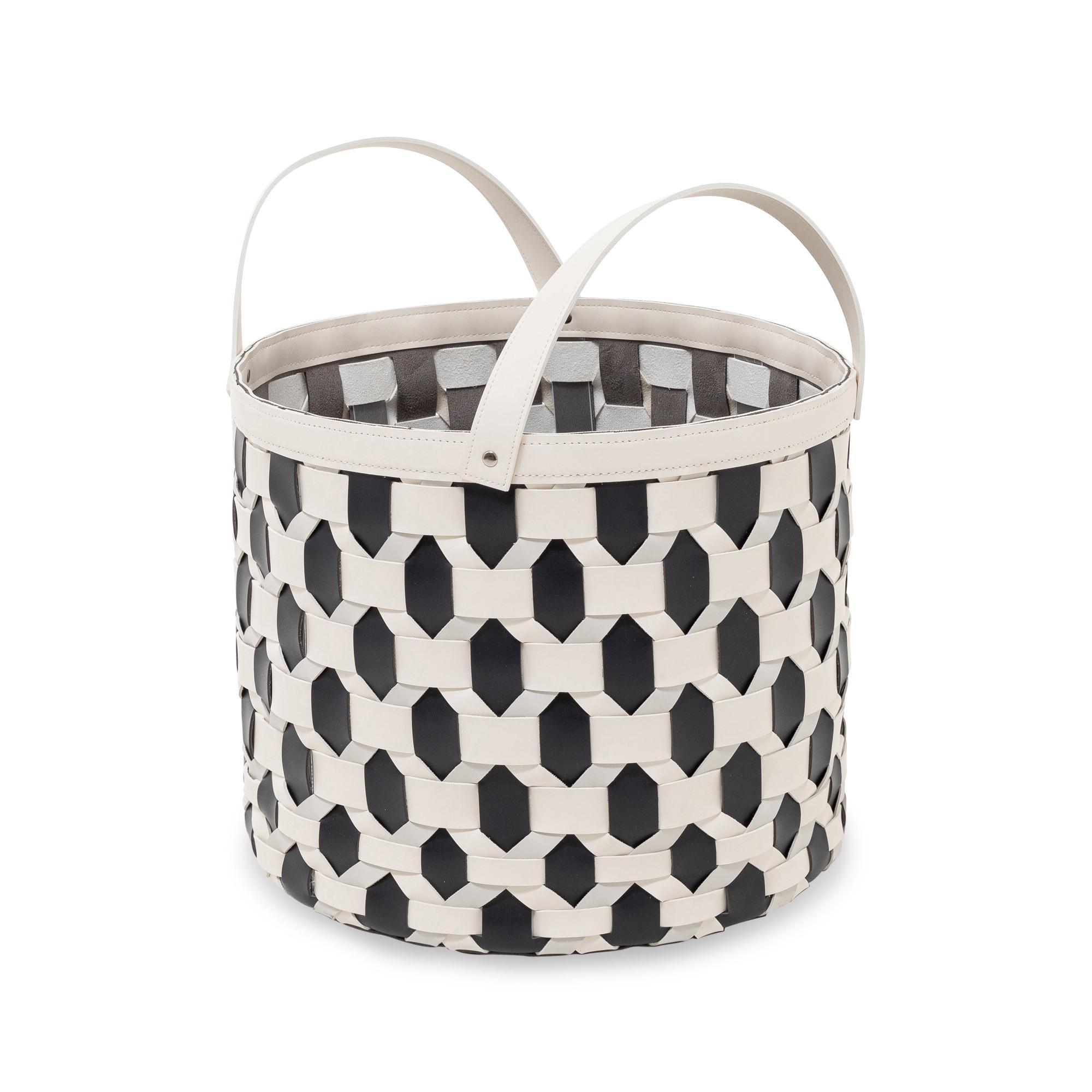Ce panier tressé avec des poignées de transport mobiles et un fond stable est un accessoire de maison simple et moderne, conçu pour un design d'intérieur individuel. Le panier est disponible en différentes couleurs et formats.