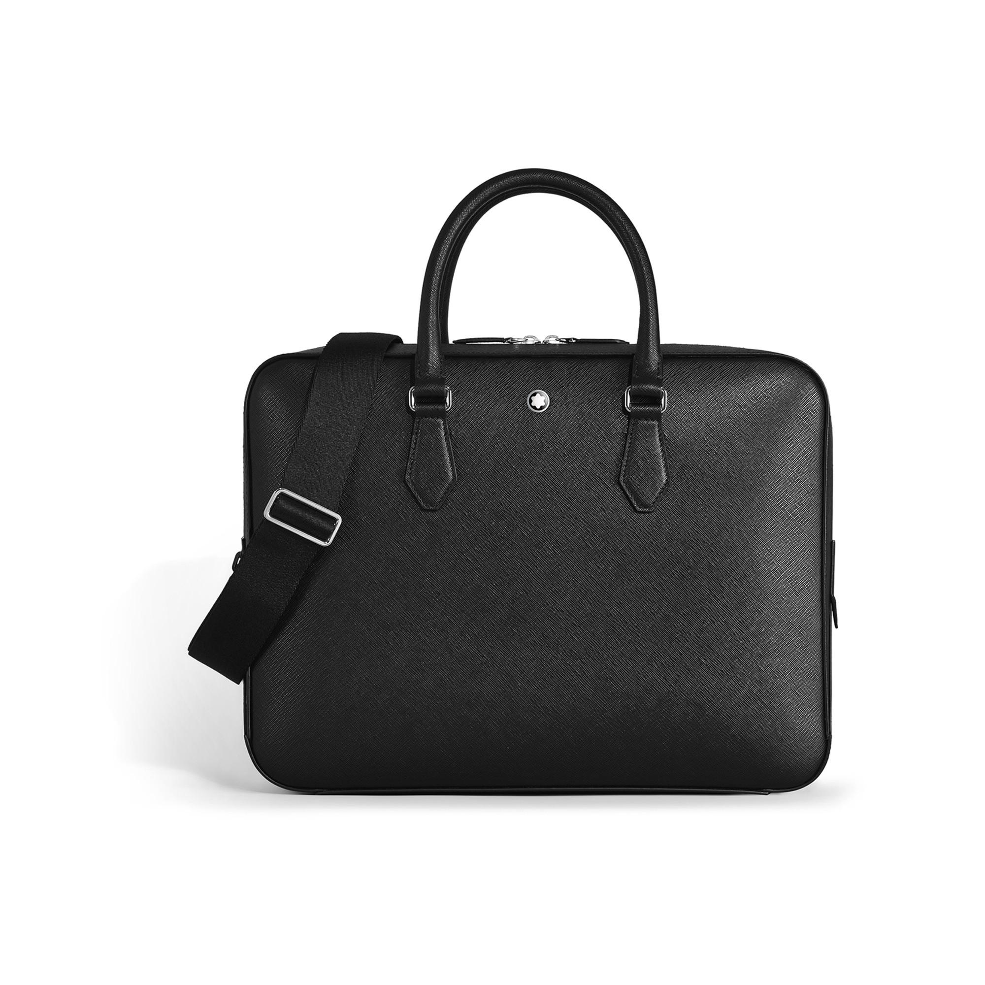 Ce porte-documents élégant est doté d'un compartiment principal spacieux pour transporter des documents A4, des appareils électroniques et d’autres accessoires professionnels en toute élégance. Vos instruments d’écriture peuvent être rangés dans des poches dédiées, tandis que le design modulaire adaptable permet de le fixer à d’autres sacs de la collection Sartorial. Le luxueux cuir imprimé assure l’harmonie du modèle, lui apportant une touche de sophistication.
