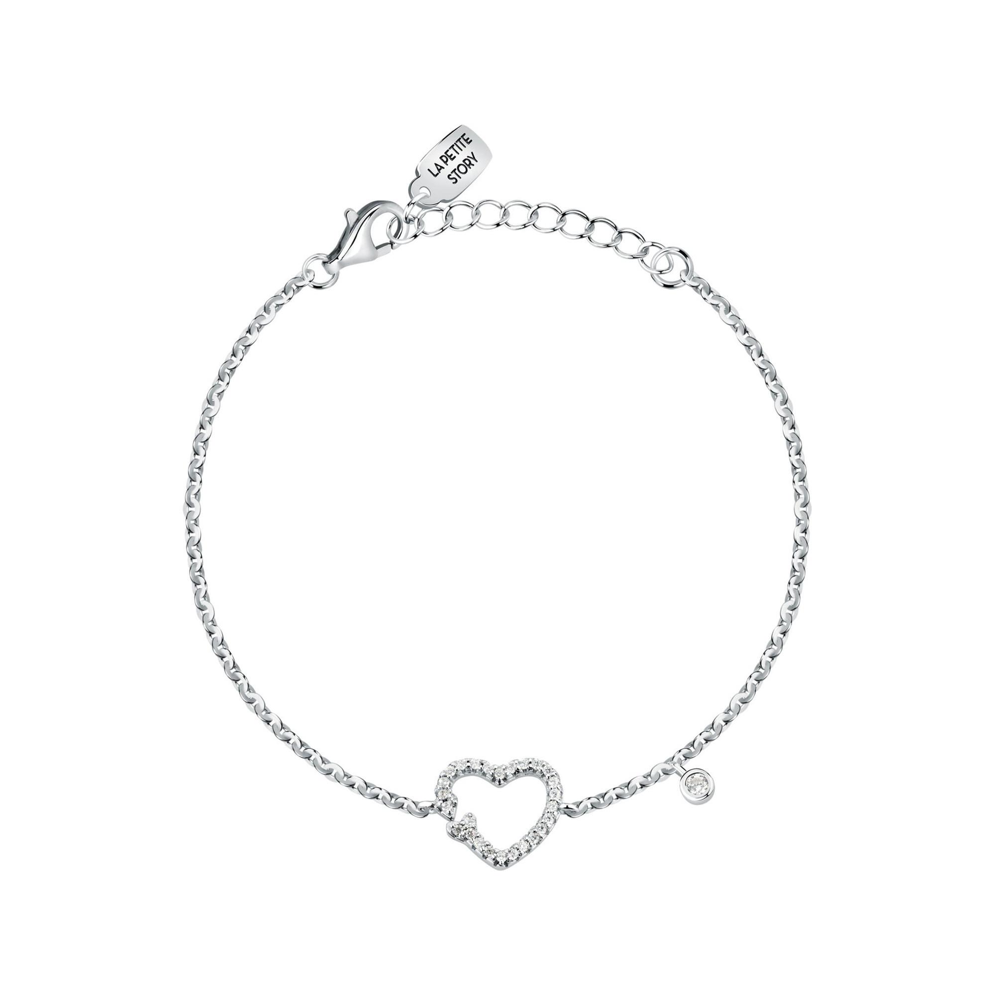 Ce bracelet La Petite Story en argent sterling est un bijou délicat pour les femmes. Le design argenté classique avec un motif de cœur et des pierres de zirconium blanches lui confère une touche romantique.