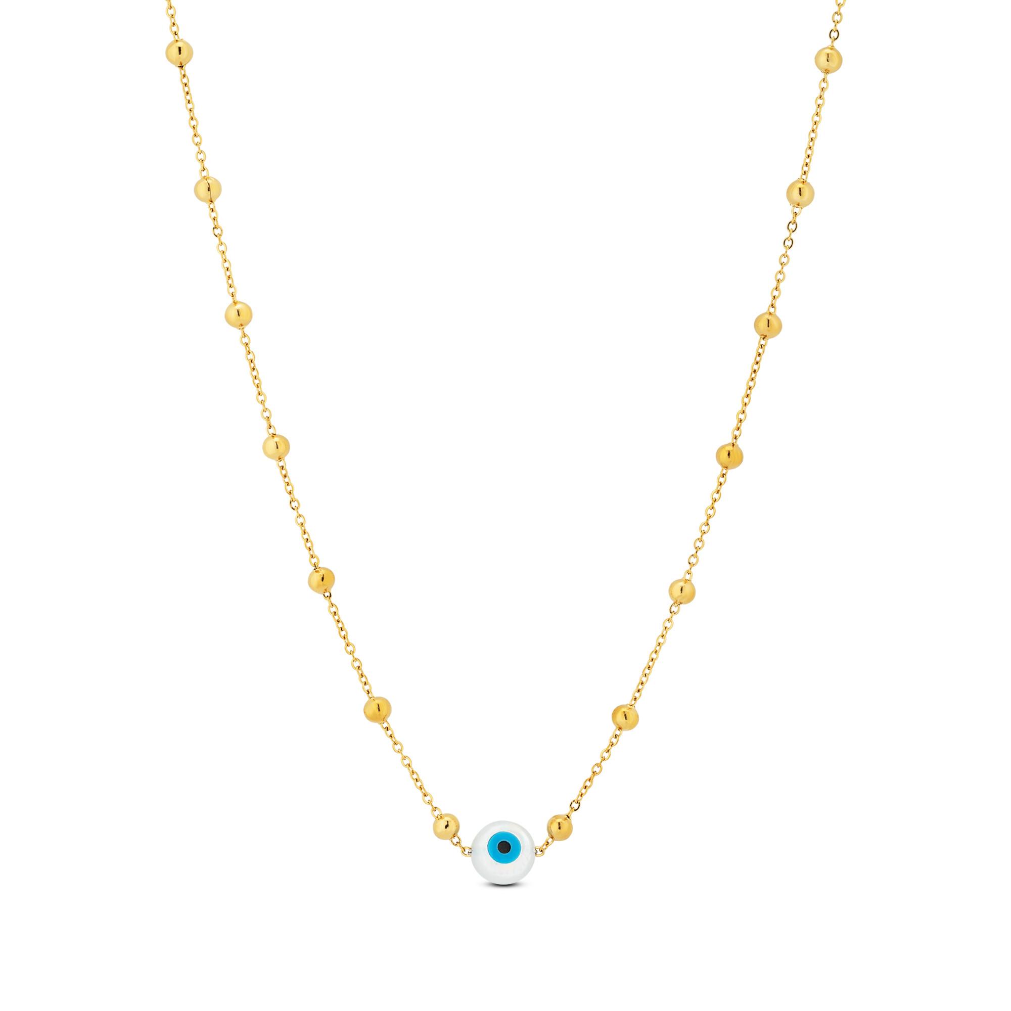 Ce collier filigrane de Zag Bijoux est en acier inoxydable et porte un pendentif fixe sous la forme d'un œil stylisé. La chaîne est fermée par un fermoir à mousqueton et est réglable en largeur.