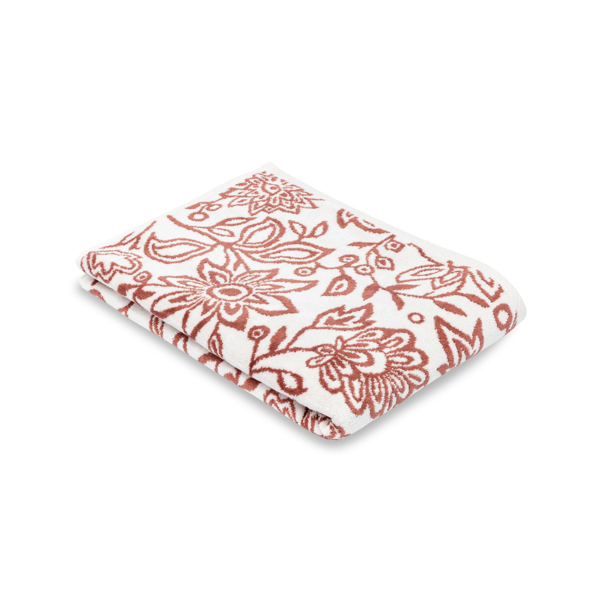 Cette serviette de douche de Manor en éponge douce en pur coton apporte une fraîcheur naturelle dans la salle de bain. L'accessoire de salle de bain est à motif floral et possède une boucle de suspension.