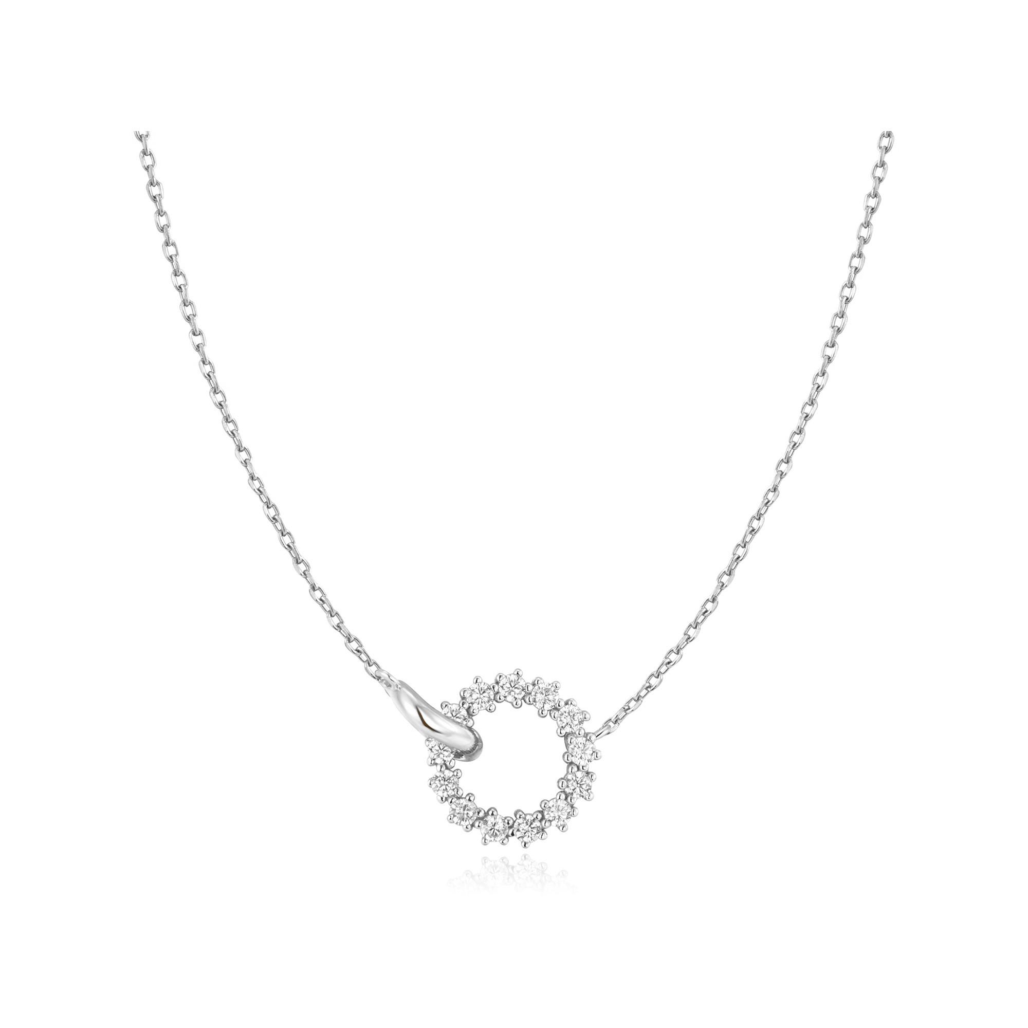 Ce collier en or avec cercles entrelacés et garniture pavée en pierres de zirconium cubiques est en argent sterling 925. Avec sa forme de pendentif circulaire, il confère à chaque décolleté une touche de brillance.