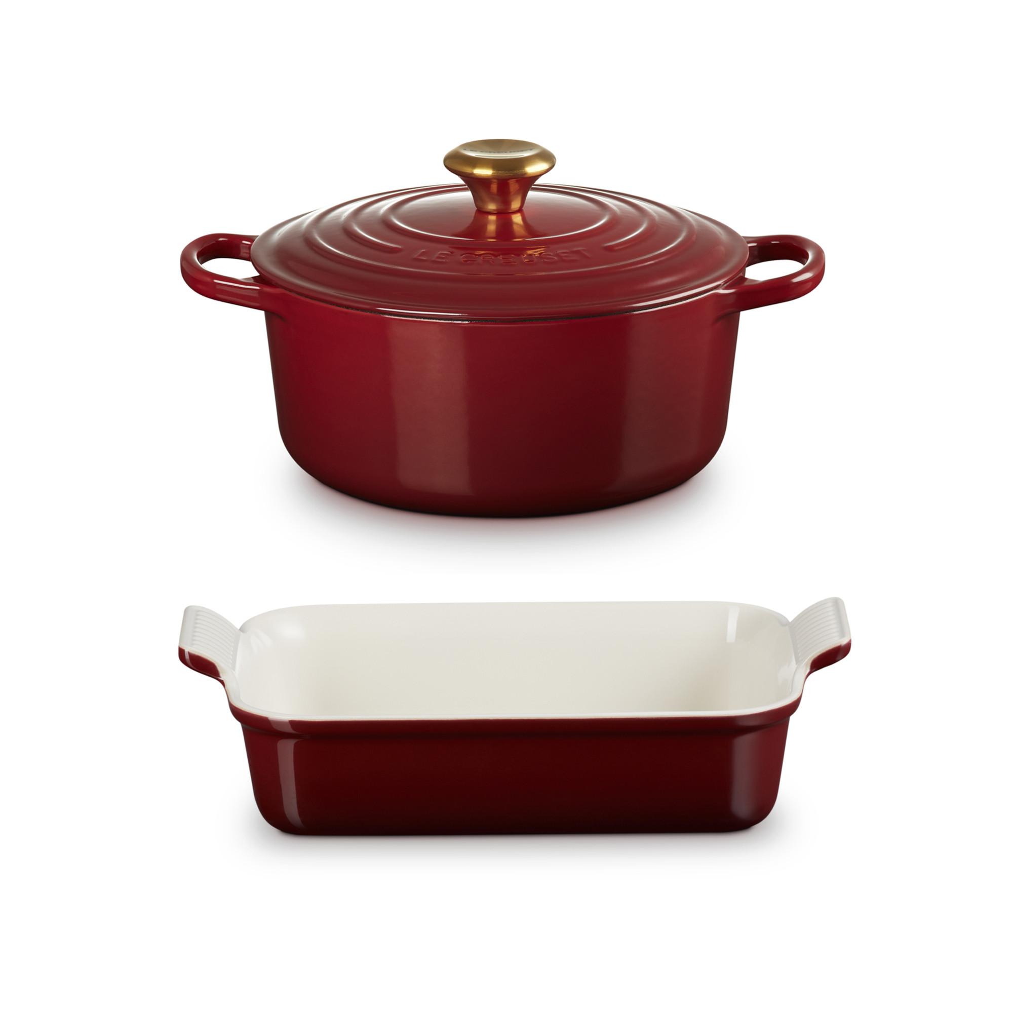 Le set de Le Creuset se compose d'une cocotte et d'un plat à four.