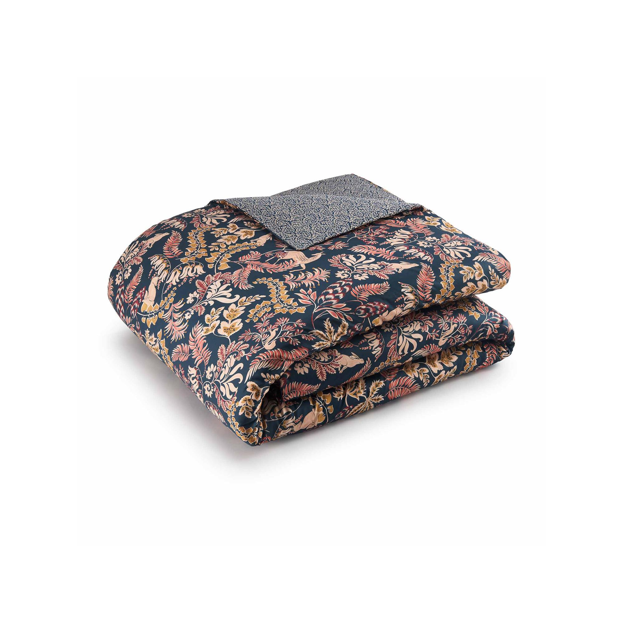 - Housse de couette réversible, imprimée au recto et au verso d'un motif raffiné de fleurs et d'animaux en deux tons différents, enveloppe avec goulot de bouteille