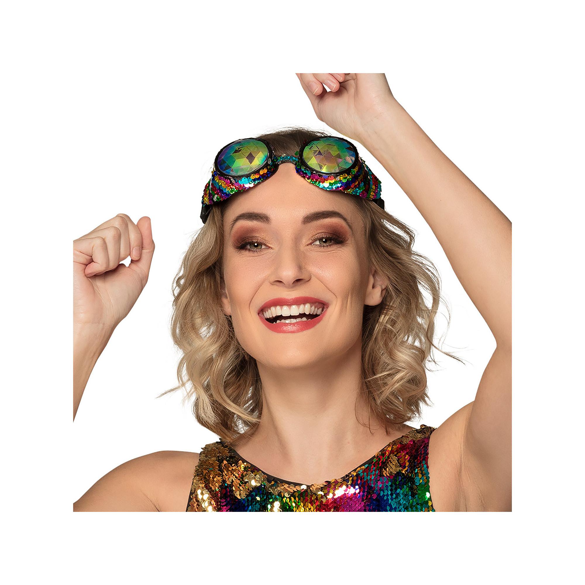 Lunettes de fête extraordinaires avec des paillettes arc-en-ciel colorées. L'accessoire parfait pour un look festivalier accrocheur. Les lunettes sont dotées de verres inhabituels et d'une sangle élastique réglable, ce qui les rend confortables à porter. Elles sont également parfaites pour compléter un look coloré lors de la Pride !