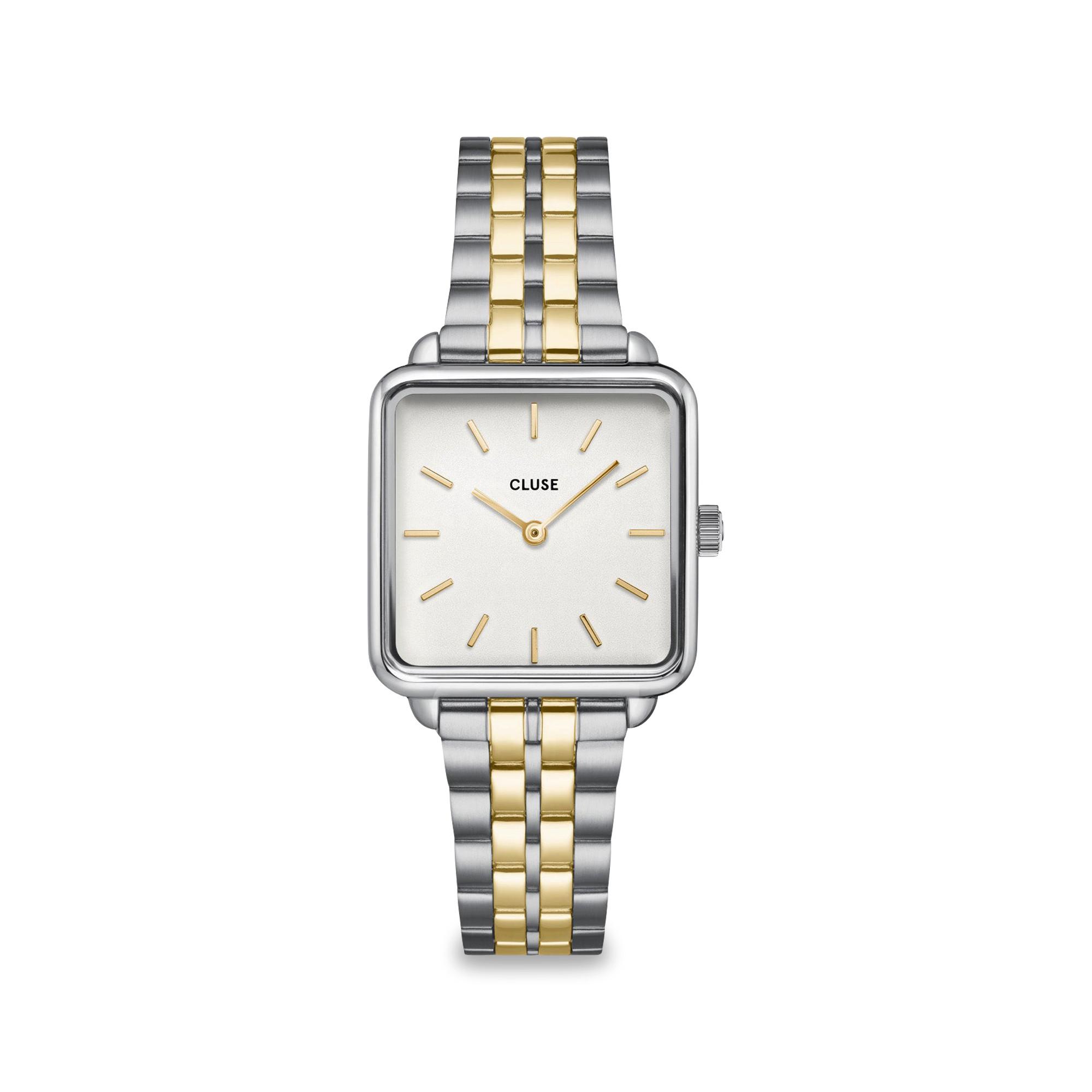 Ajoutez une touche de luxe et d'élégance à votre garde-robe quotidienne avec la montre pour femmes La Tétragone. Avec un boîtier carré, argenté de 28,5 mm, un bracelet à 5 maillons bicolore et un cadran couleur lait de coco. Cette montre bicolore classique dans la combinaison de l'argent et de l'or ne se démodera jamais. Personnalisez facilement l'apparence de votre montre avec n'importe quel bracelet de montre de 16 mm. Vous pouvez facilement régler la taille du bracelet vous-même.