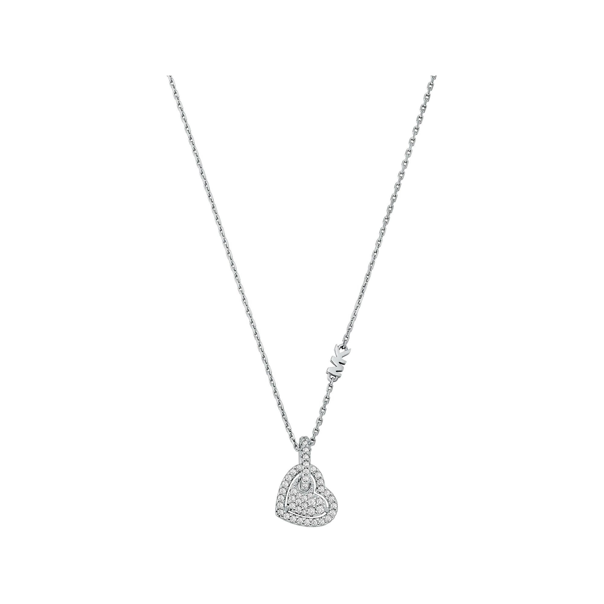Ce collier de la collection Kors Love de Michael Kors pour femmes est en argent sterling 925 et possède une fermeture à ressort. Il est orné d'un pendentif en forme de cœur avec des pierres de zirconium étincelantes et est réglable dans la longueur.