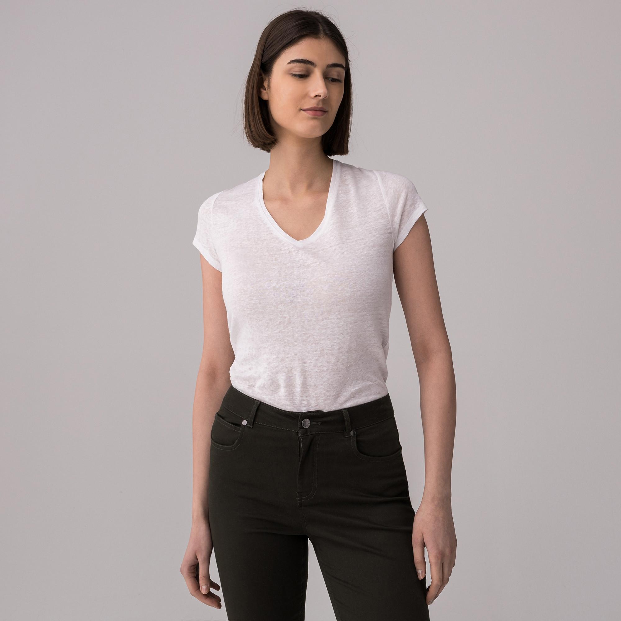 Le t-shirt de Manor Woman en maille de lin fin offre une qualité légère et perméable à l'atmosphère. La marbrure discrète confère au design de couleur unie une texture raffinée, tandis que la coupe classique à manches courtes permet des combinaisons polyvalentes. Un basique élégant pour toute garde-robe.