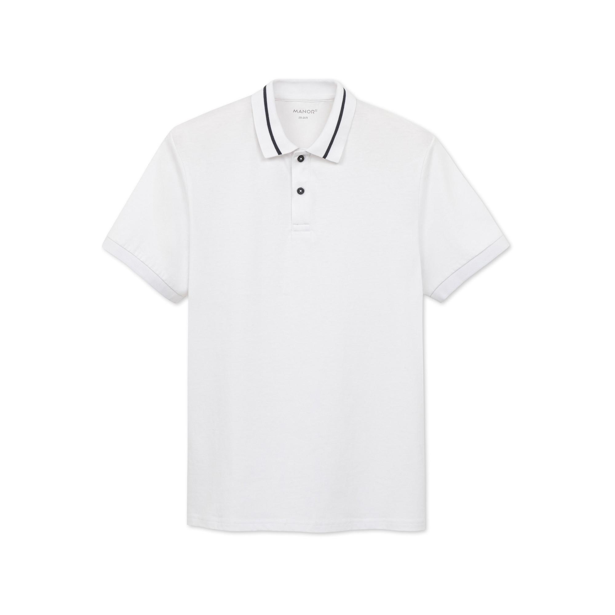 Ce polo en pur coton est un t-shirt polyvalent pour le bureau et les loisirs, avec une coupe classique et un col plat tricoté avec un accent rayé sportif.