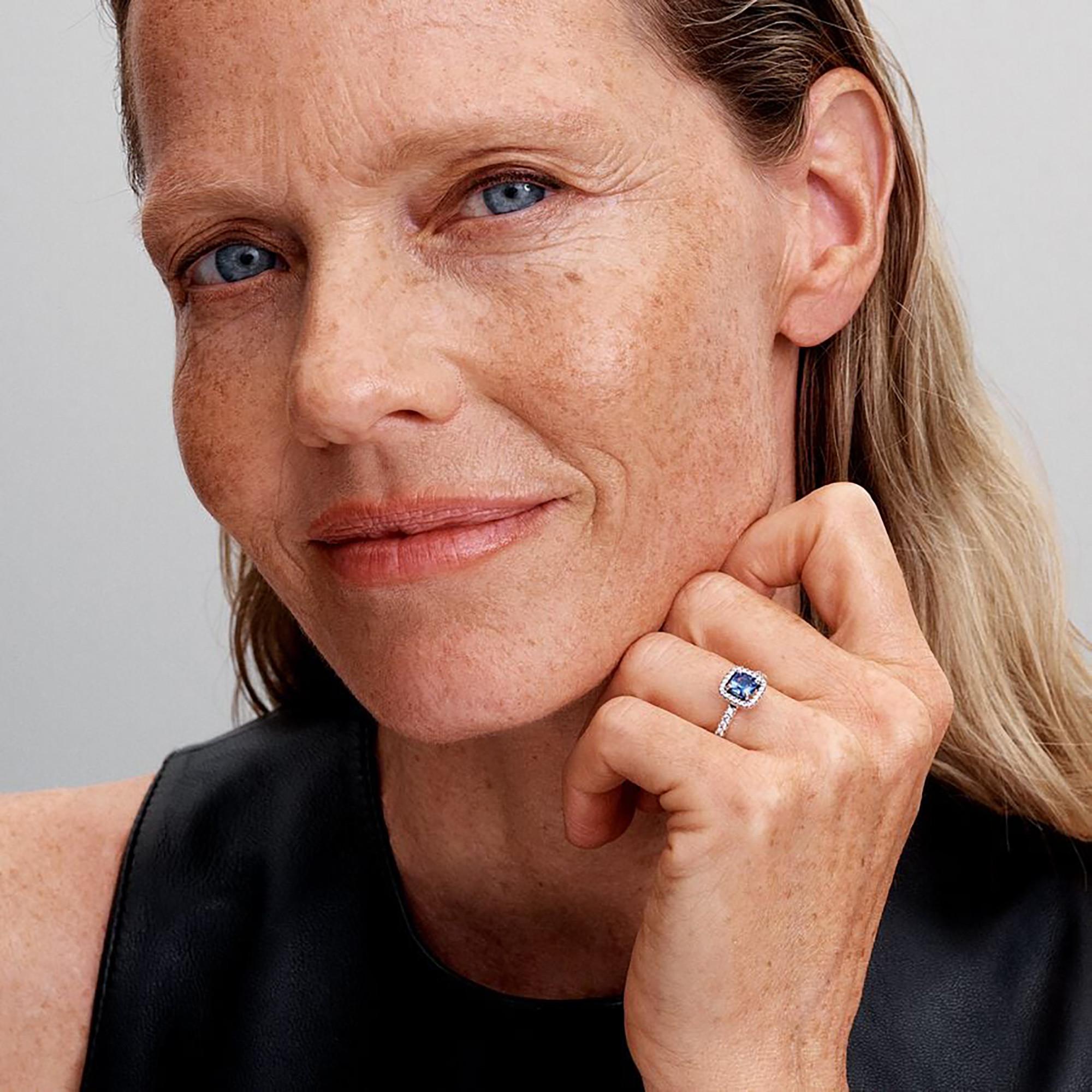 L'anneau rayonnant bleu étincelant allie élégance moderne et extravagance. Cette bague en argent sterling est sertie d'un cristal artificiel bleu dans une taille coussin, encadrée par une couronne rayonnante carrée en pavé. Avec des détails pavés supplémentaires sur la bande, ce bijou procure la bonne quantité d'étincelle. Elle peut être facilement combinée avec d'autres bagues et c'est le complément parfait de n'importe quelle collection existante. Ainsi, tu apportes une touche lumineuse et brillante à chaque tenue.