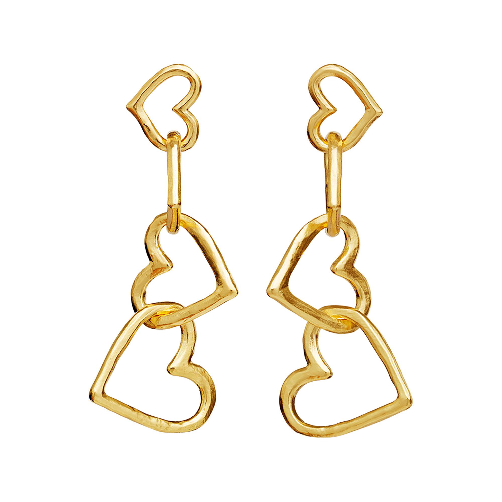 Les boucles d’oreilles Bonnie enchantent avec quatre cœurs dorés entrelacés qui pendent élégamment des oreilles. Un accessoire féminin qui apporte une touche romantique à chaque tenue.
