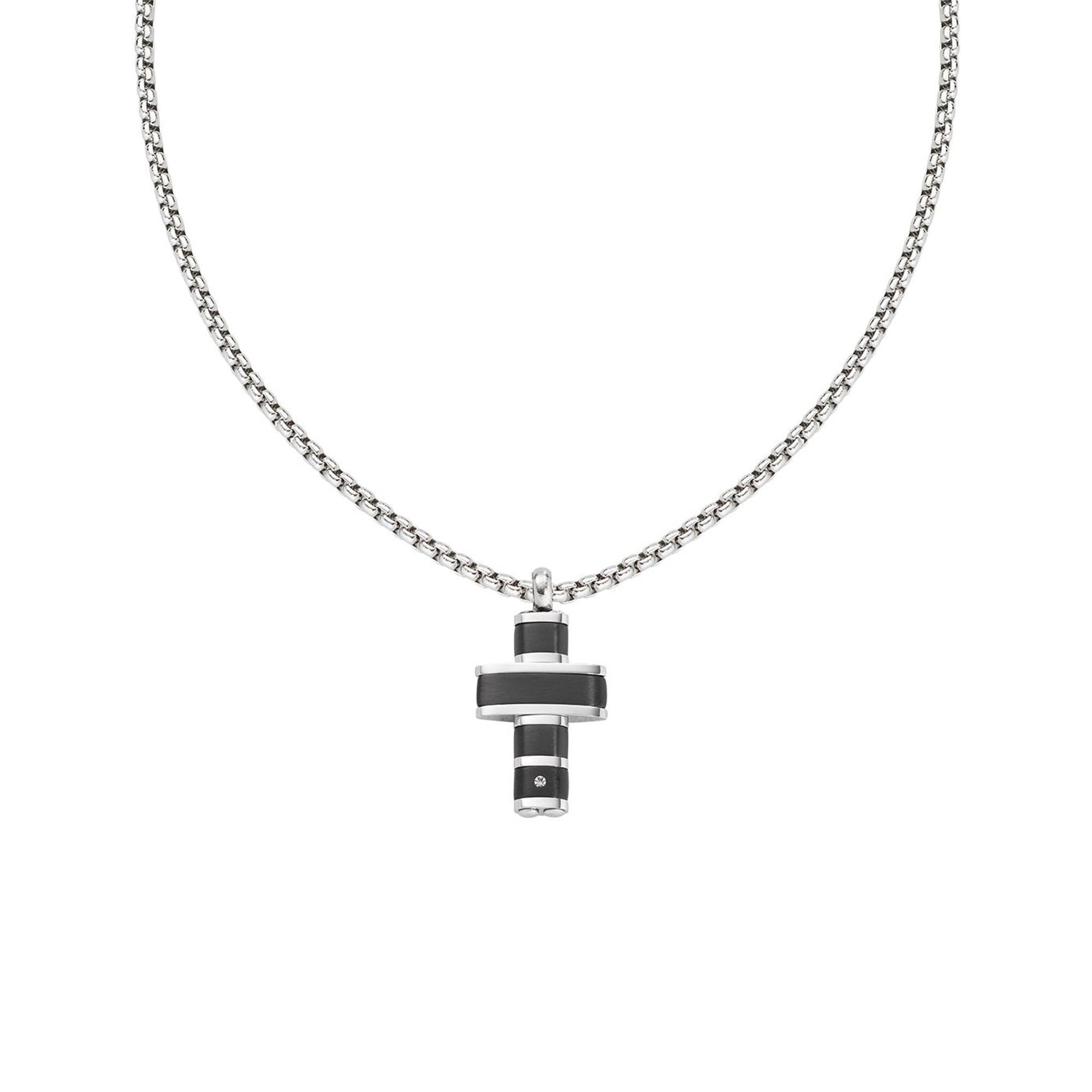 Ce collier masculin en acier inoxydable séduit par sa finition Steel/Black PVD moderne et ses pierres de zirconia blanc étincelantes. La longueur est ajustable de 47 à 50 cm et son poids de 9,4 g offre une sensation de qualité tout en restant confortable.