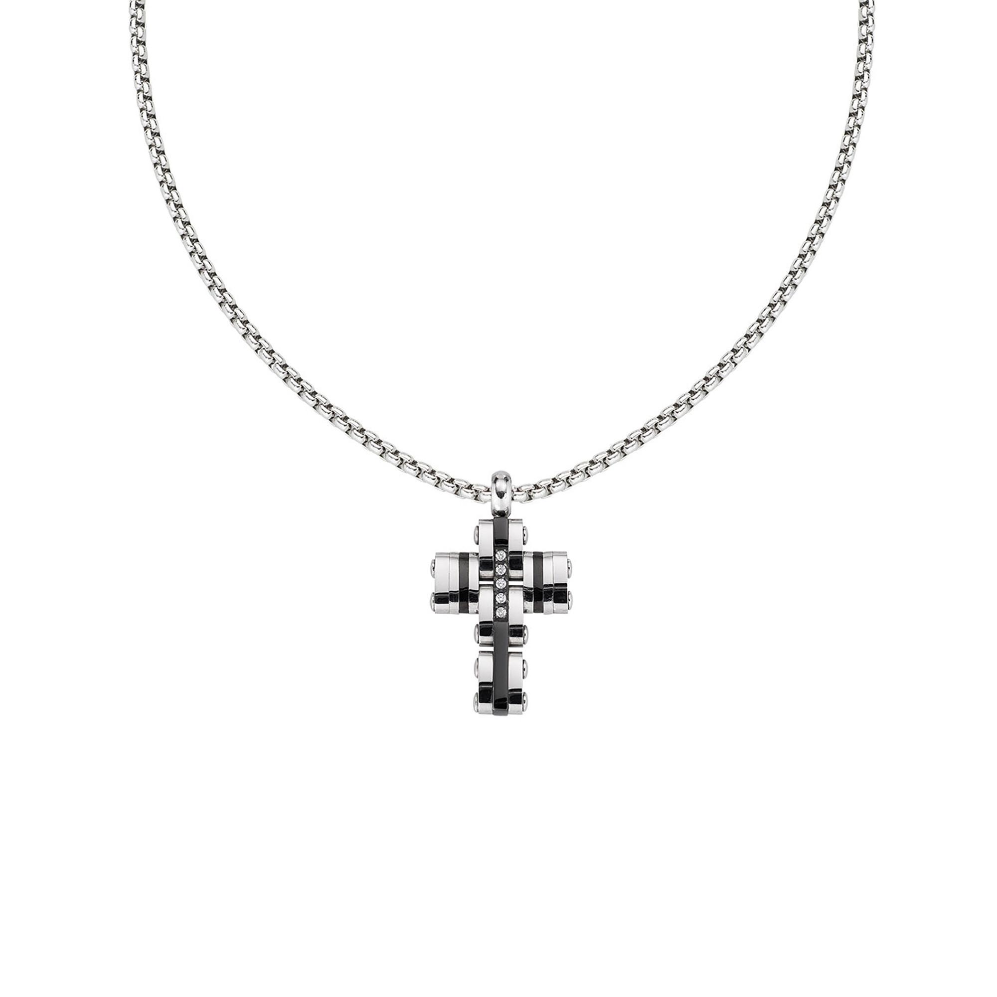 Ce collier pour homme en acier inoxydable associe une finition moderne Steel/Black PVD à des pierres de zirconia blanc scintillantes pour un look élégant. Avec une longueur réglable de 46 à 50 cm et un poids de 10 g, il offre confort et style contemporain.