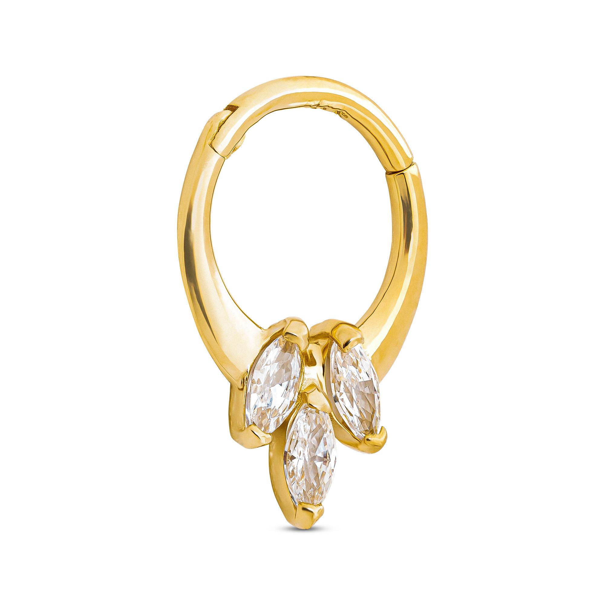Ce piercing avec fermoir Hoop de Studio Marquise est serti de pierres de zirconium en forme de feuille – un supplément magique pour une vie quotidienne plus belle.